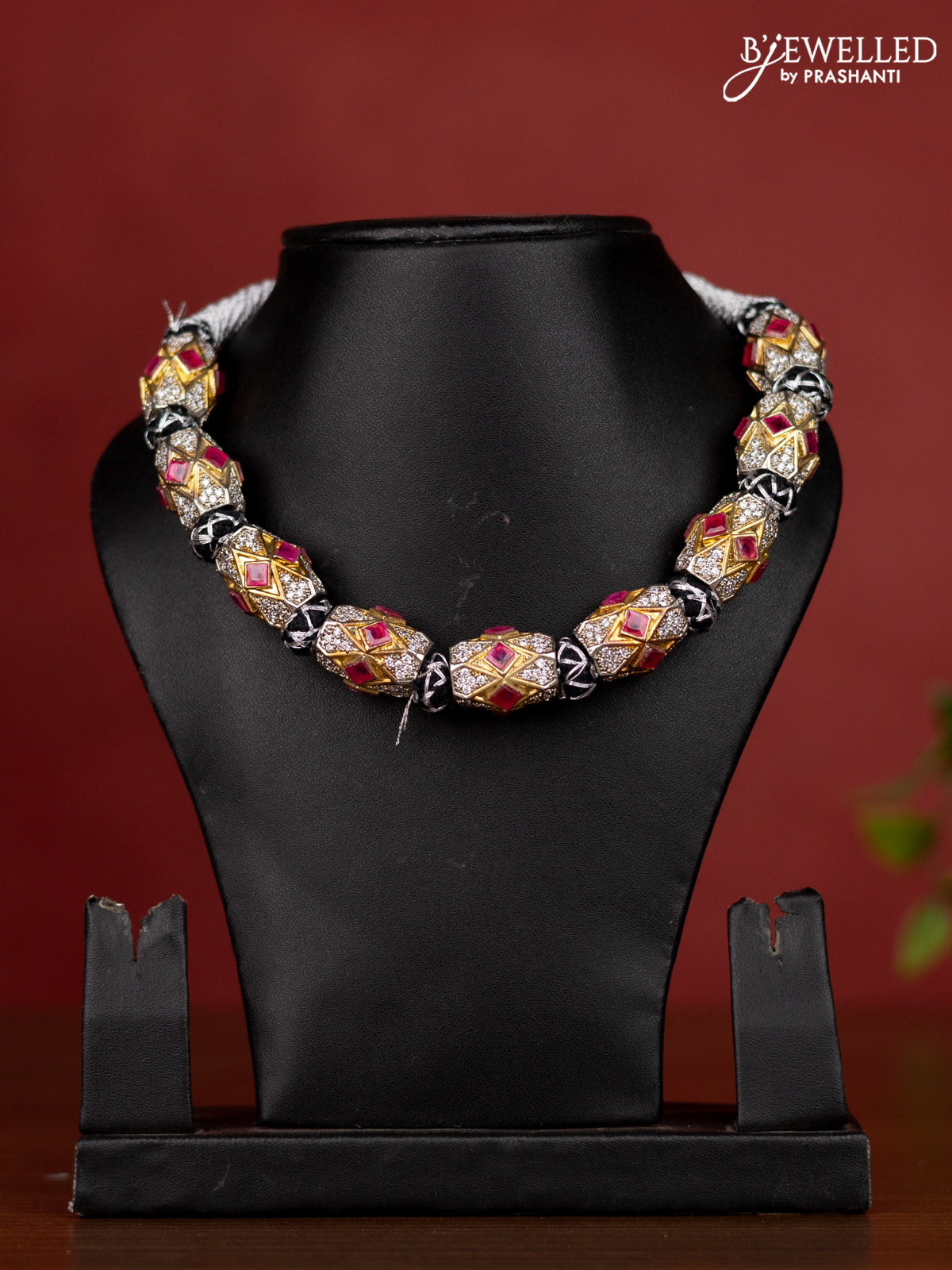 Jaipur beaded necklace with ruby and cz stone without earrings