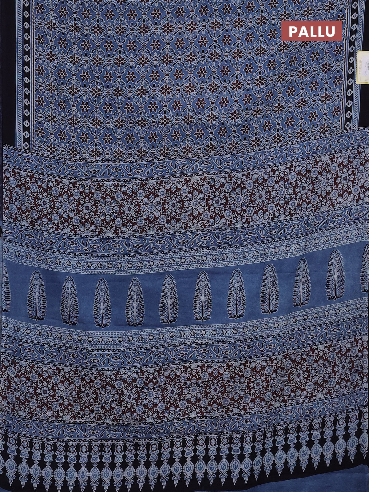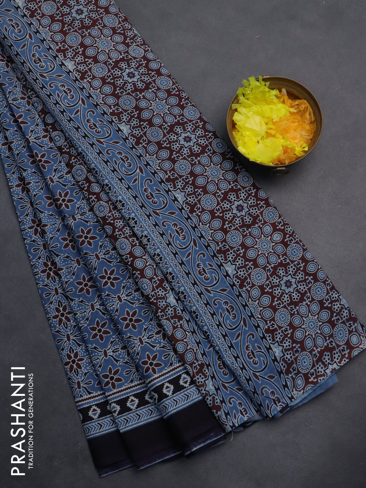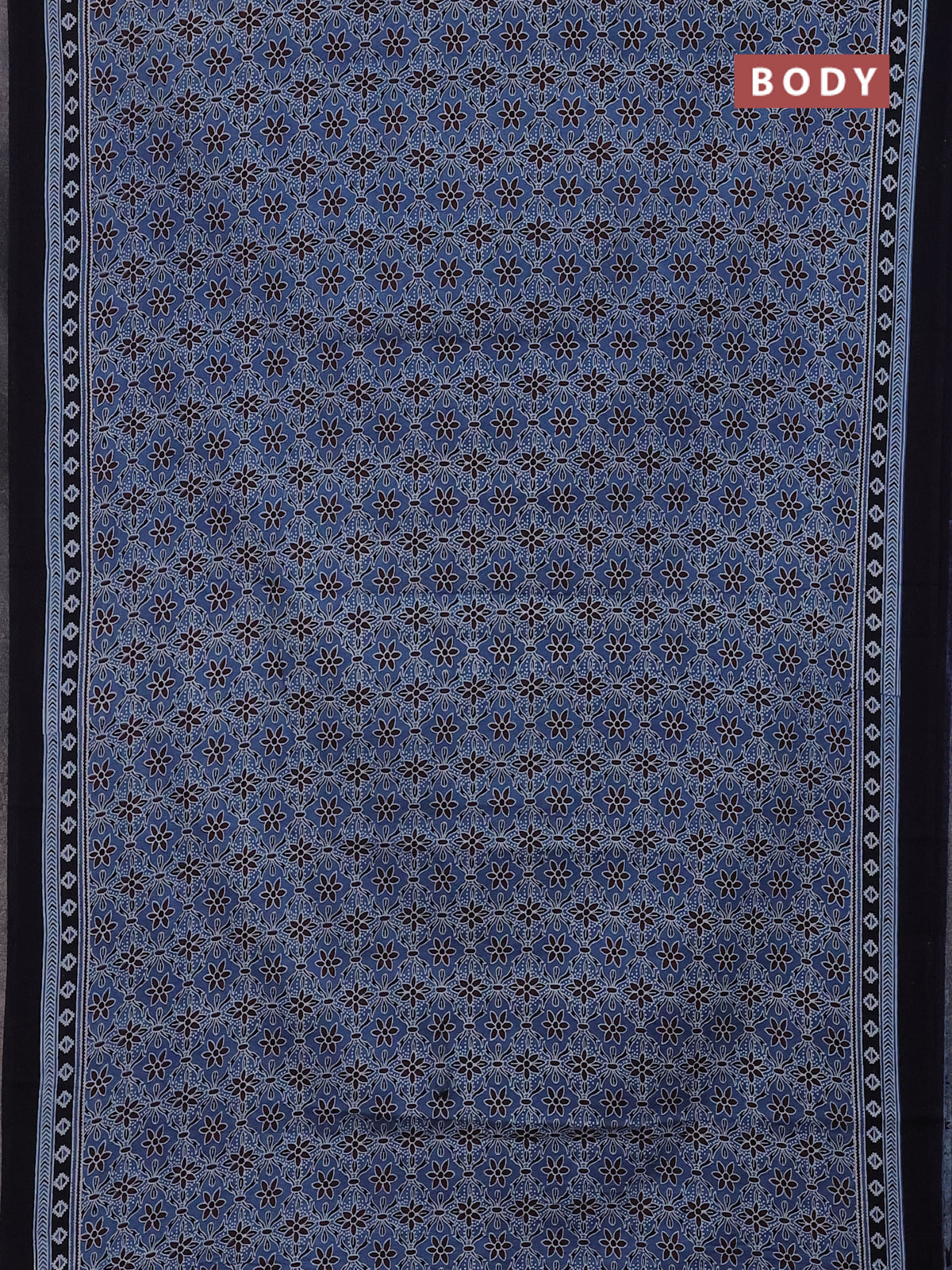 Jaipur cotton saree indigo blue and black with allover prints and printed border