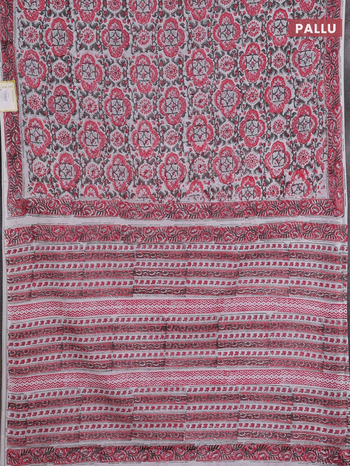 Jaipur cotton saree off white and pink with allover floral prints and printed border
