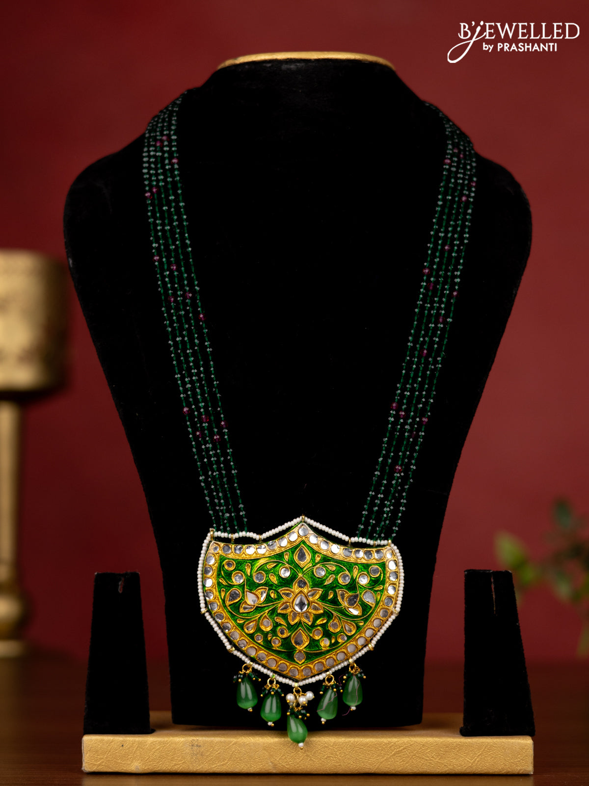 Jaipur crystal beaded dark green length necklace with minakari pendant and hangings without earrings