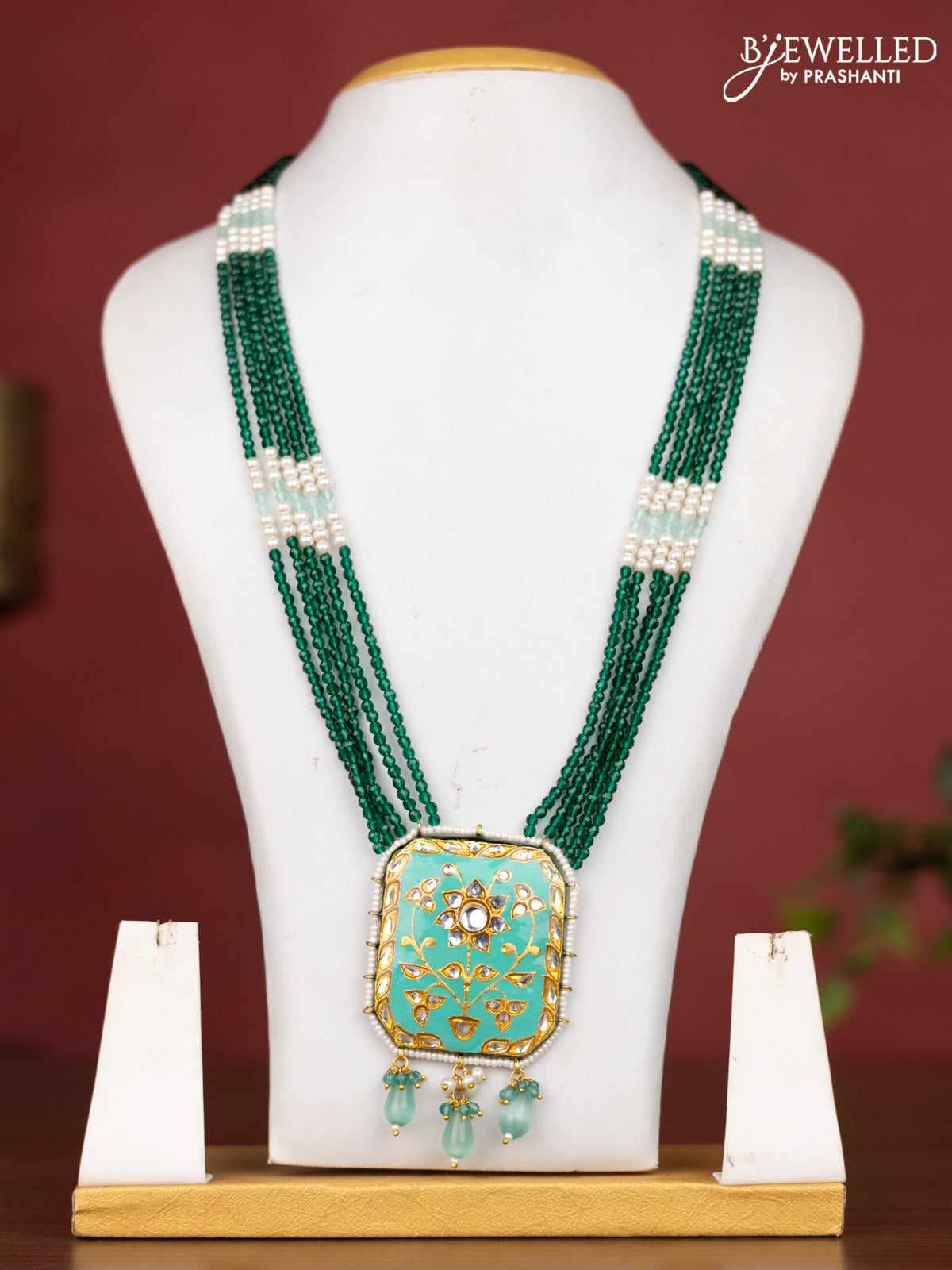 Jaipur crystal beaded dark green length necklace with minakari pendant and hangings without earrings