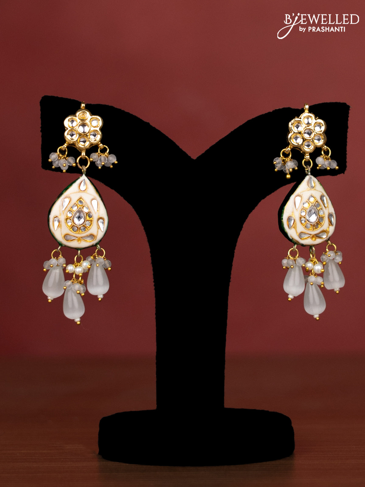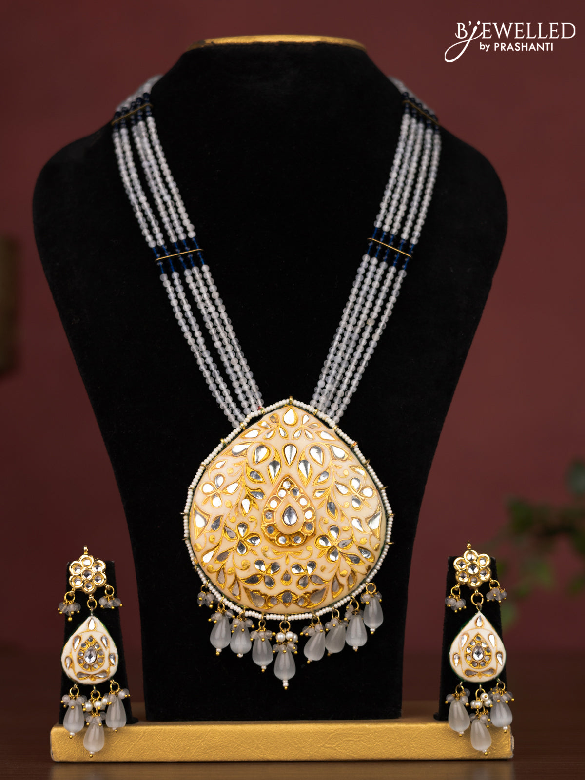 Jaipur crystal beaded grey length necklace with minakari pendant and hangings