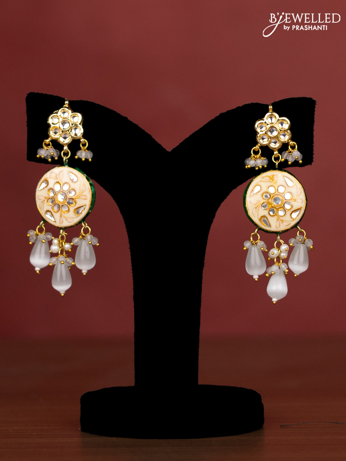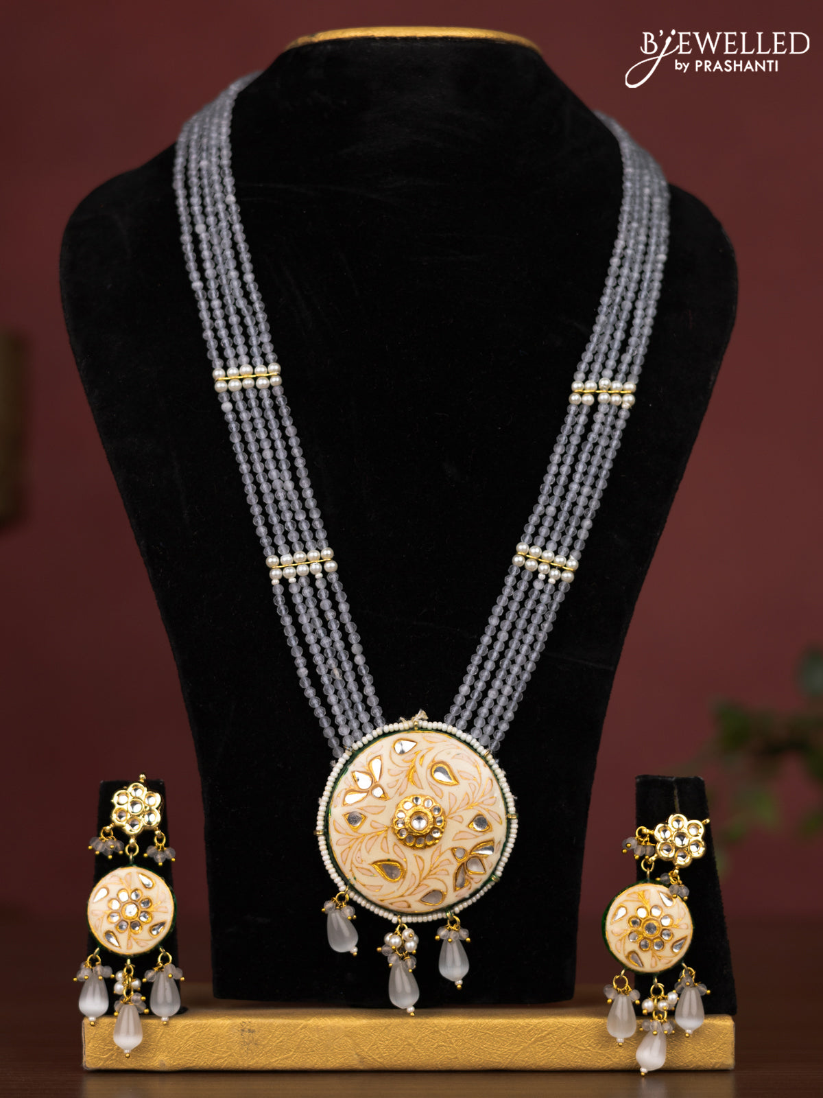 Jaipur crystal beaded grey length necklace with minakari pendant and hangings
