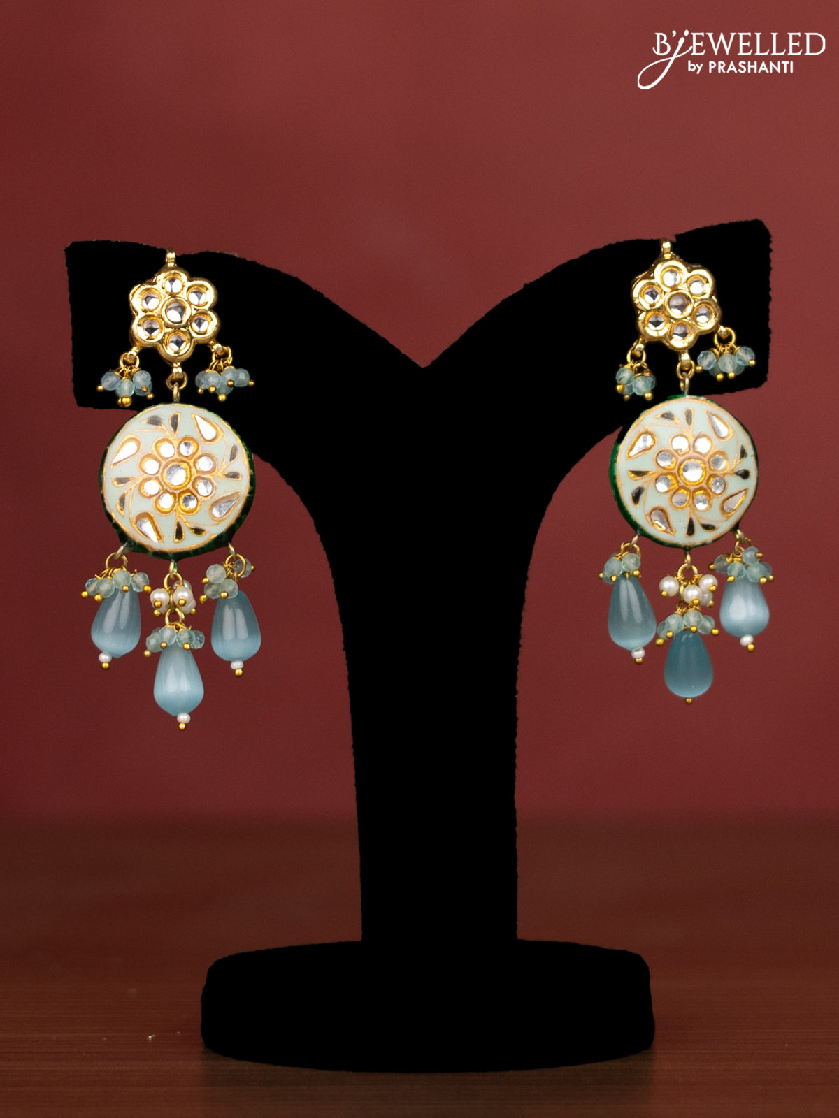 Jaipur crystal beaded light blue length necklace with minakari pendant and hangings
