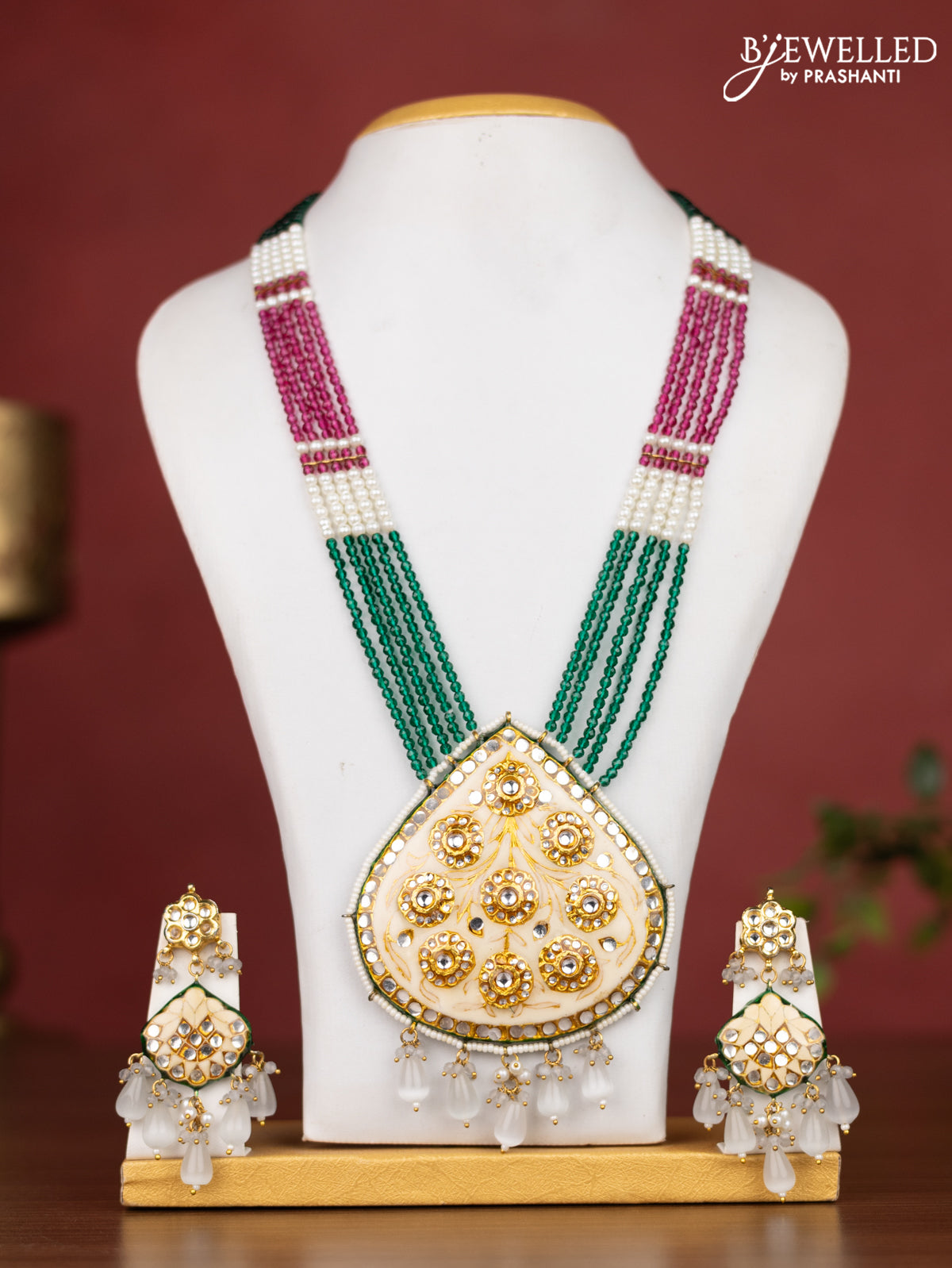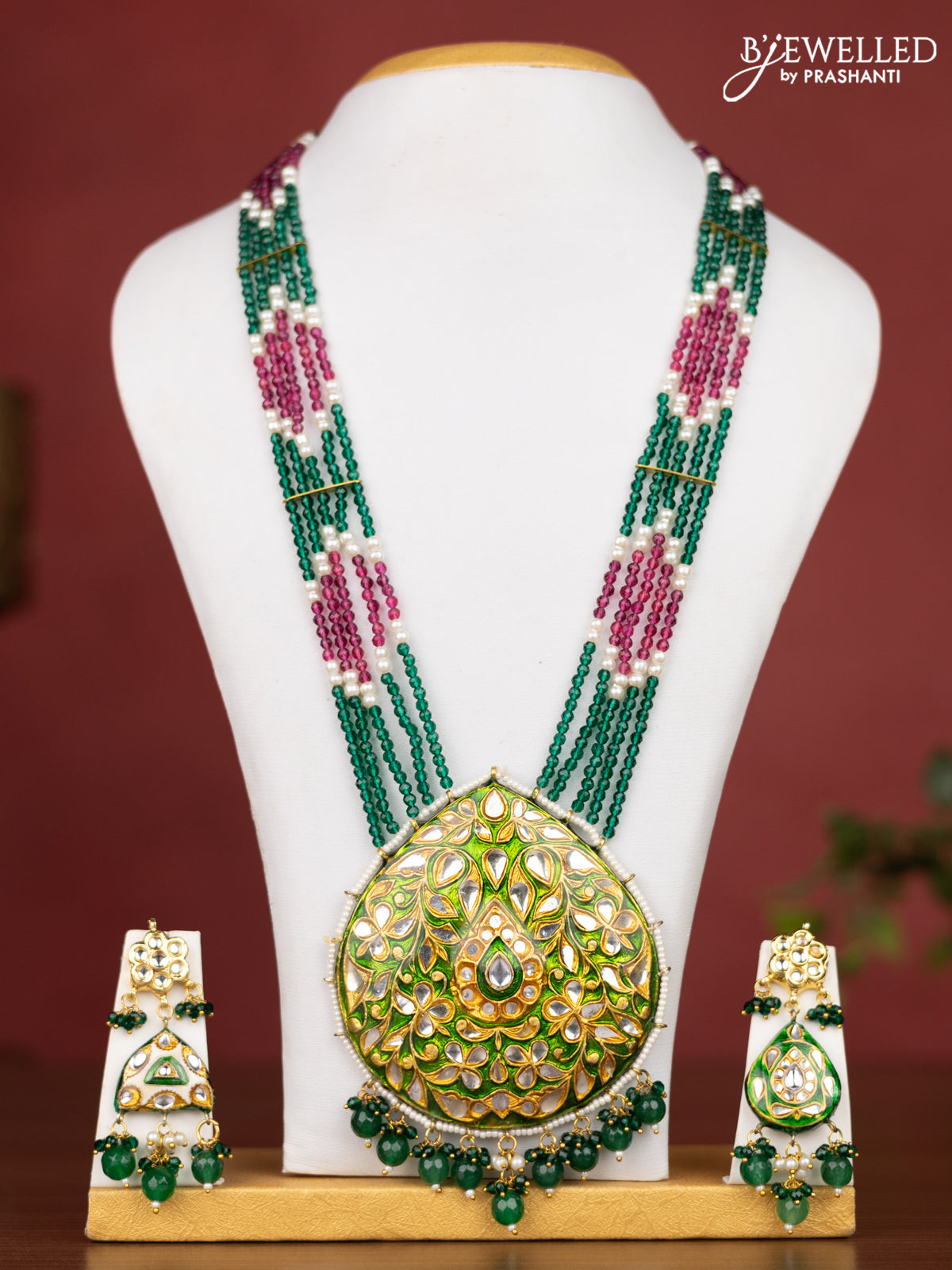 Jaipur crystal beaded multicolour length necklace with minakari pendant and hangings