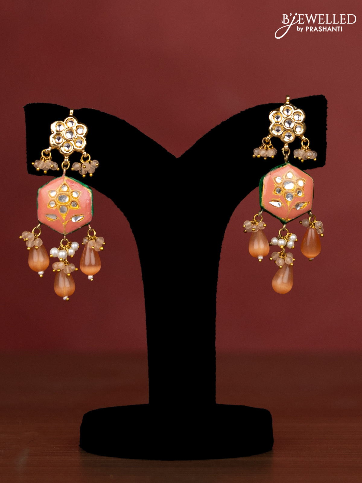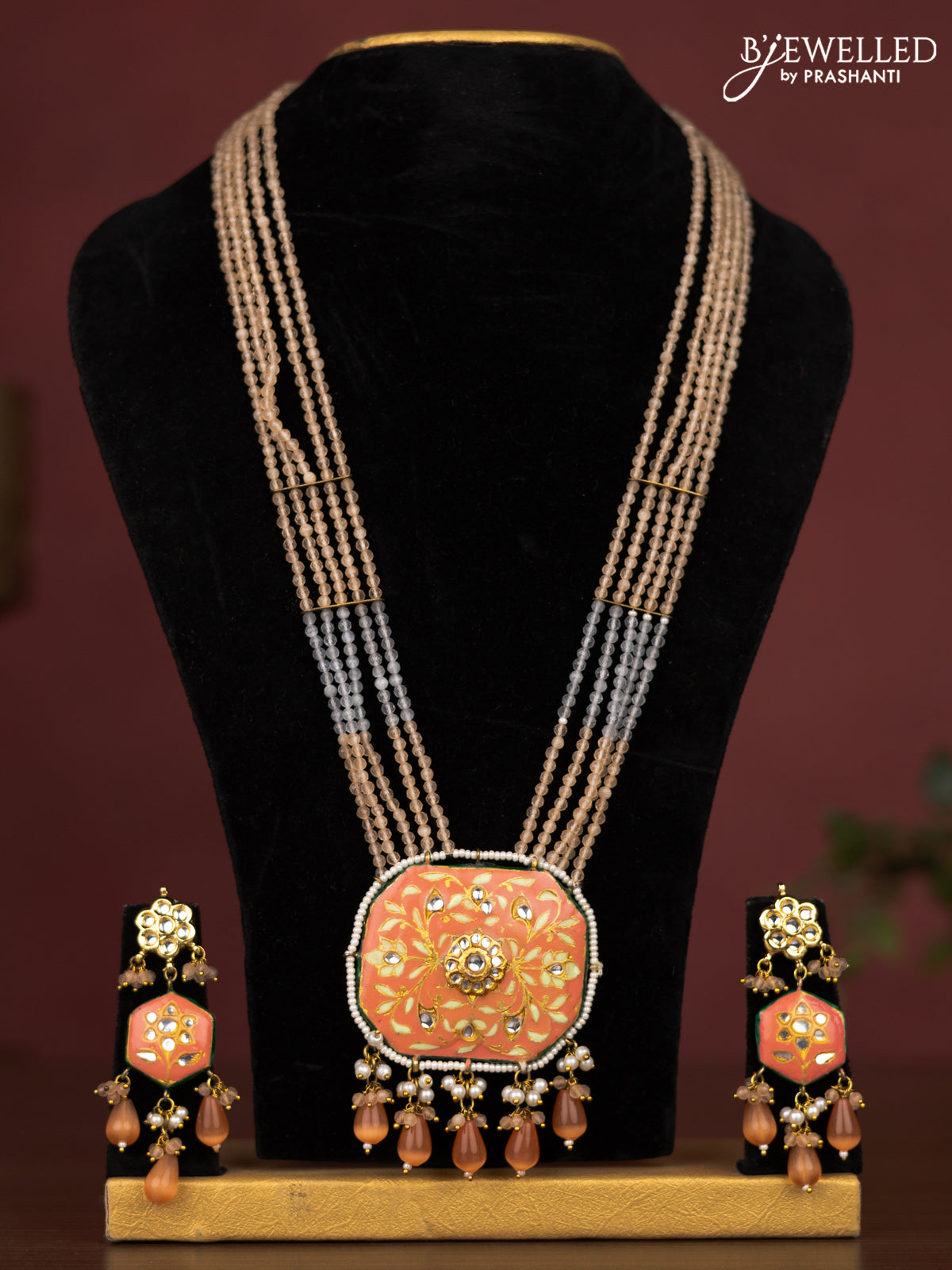 Jaipur crystal beaded peach length necklace with minakari pendant and hangings