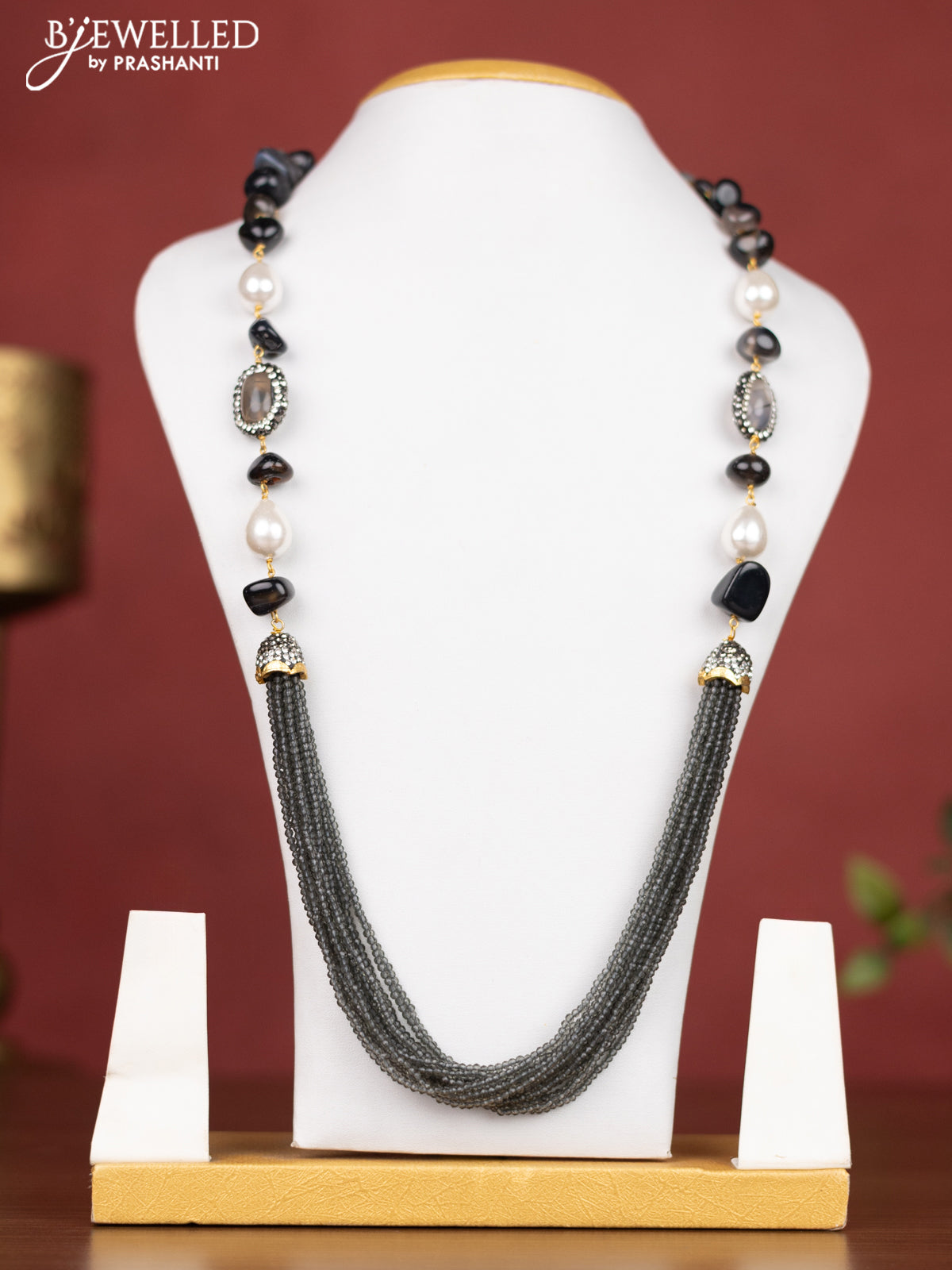 Jaipur crystal multilayer beaded grey necklace with grey & black stones without earring