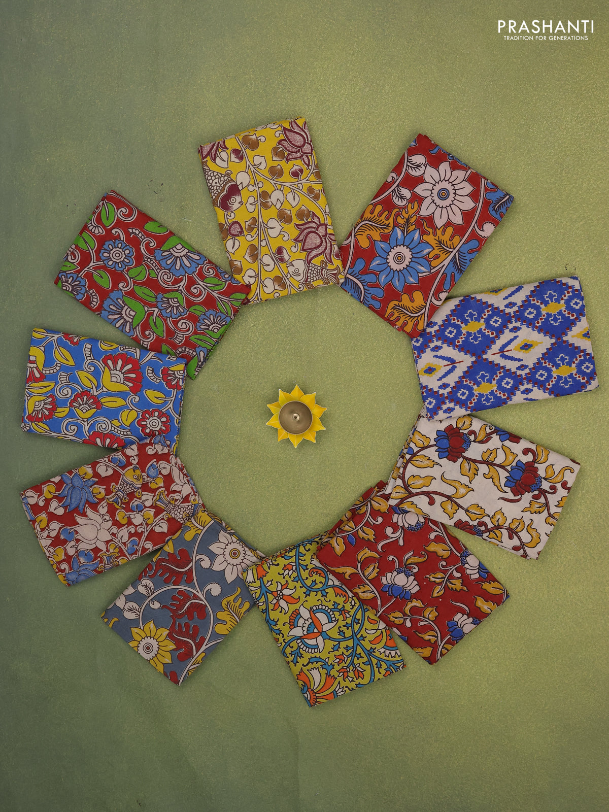 Kalamkari cotton blouse bits multi colour and multi design with pack of 10
