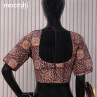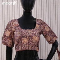 Kalamkari cotton readymade blouse coffee brown with allover prints and back knot