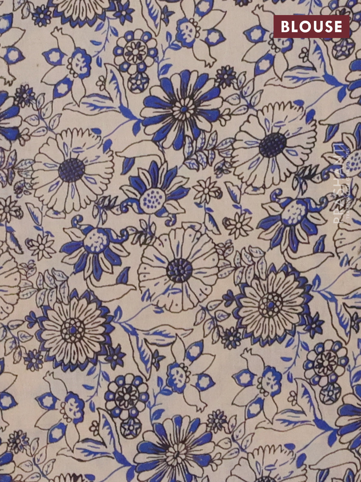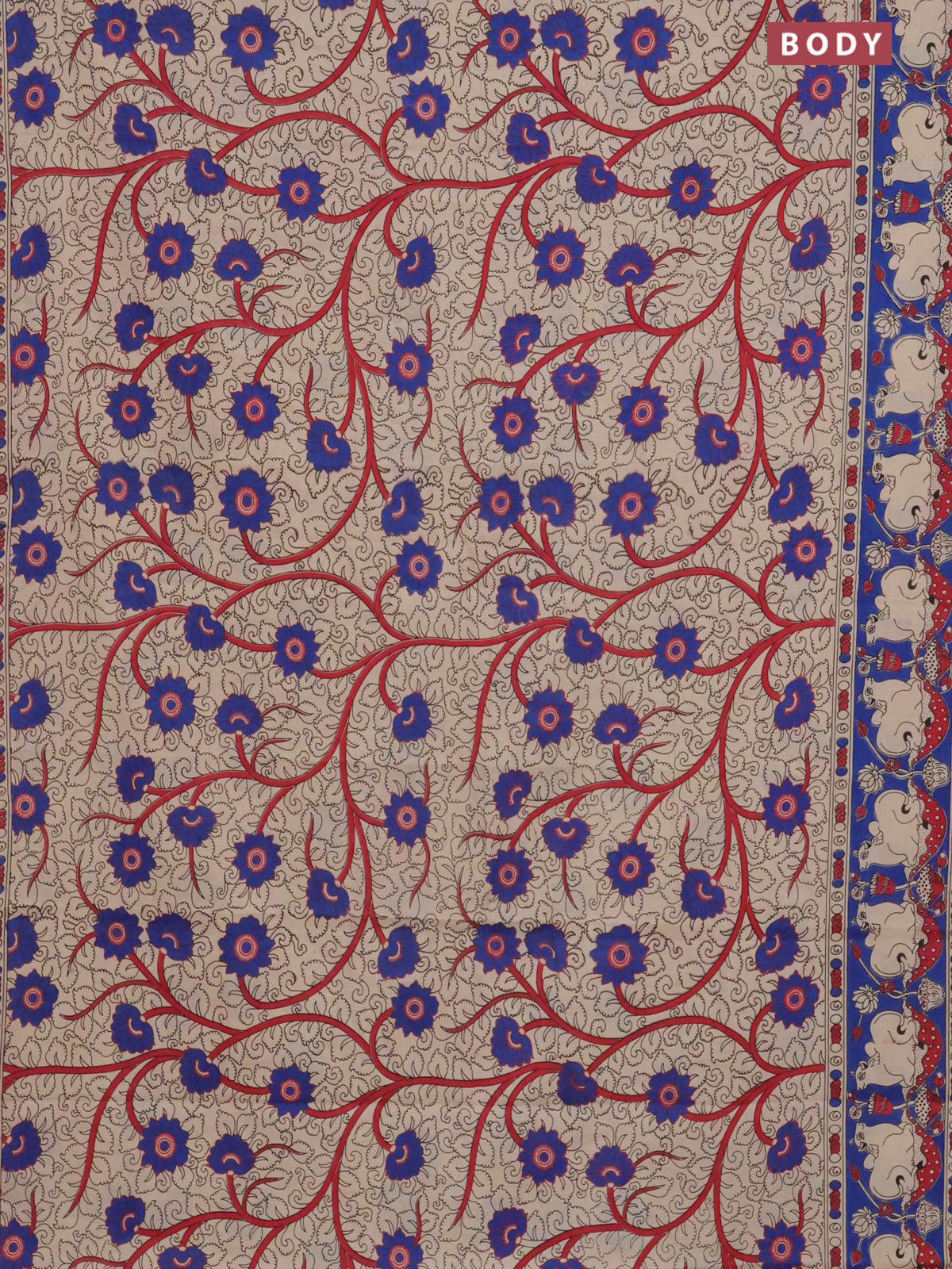 Kalamkari cotton saree beige and blue with allover prints and printed border