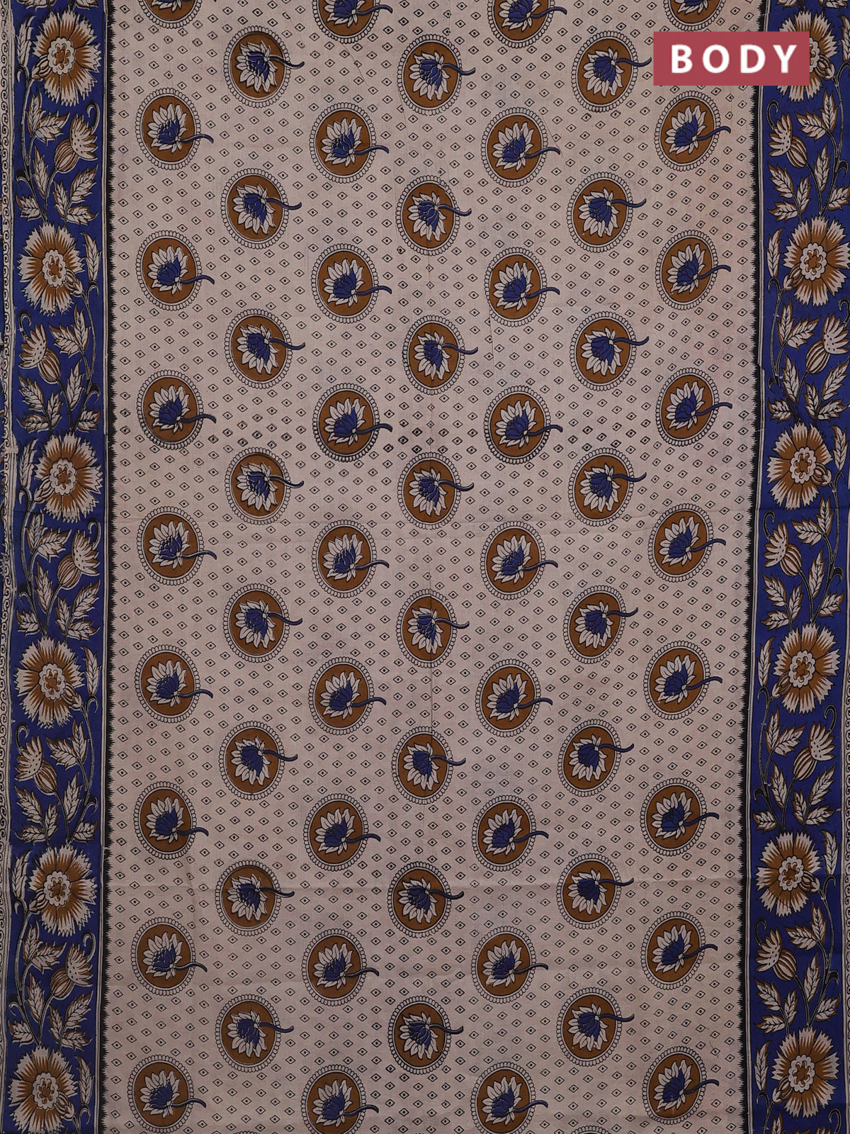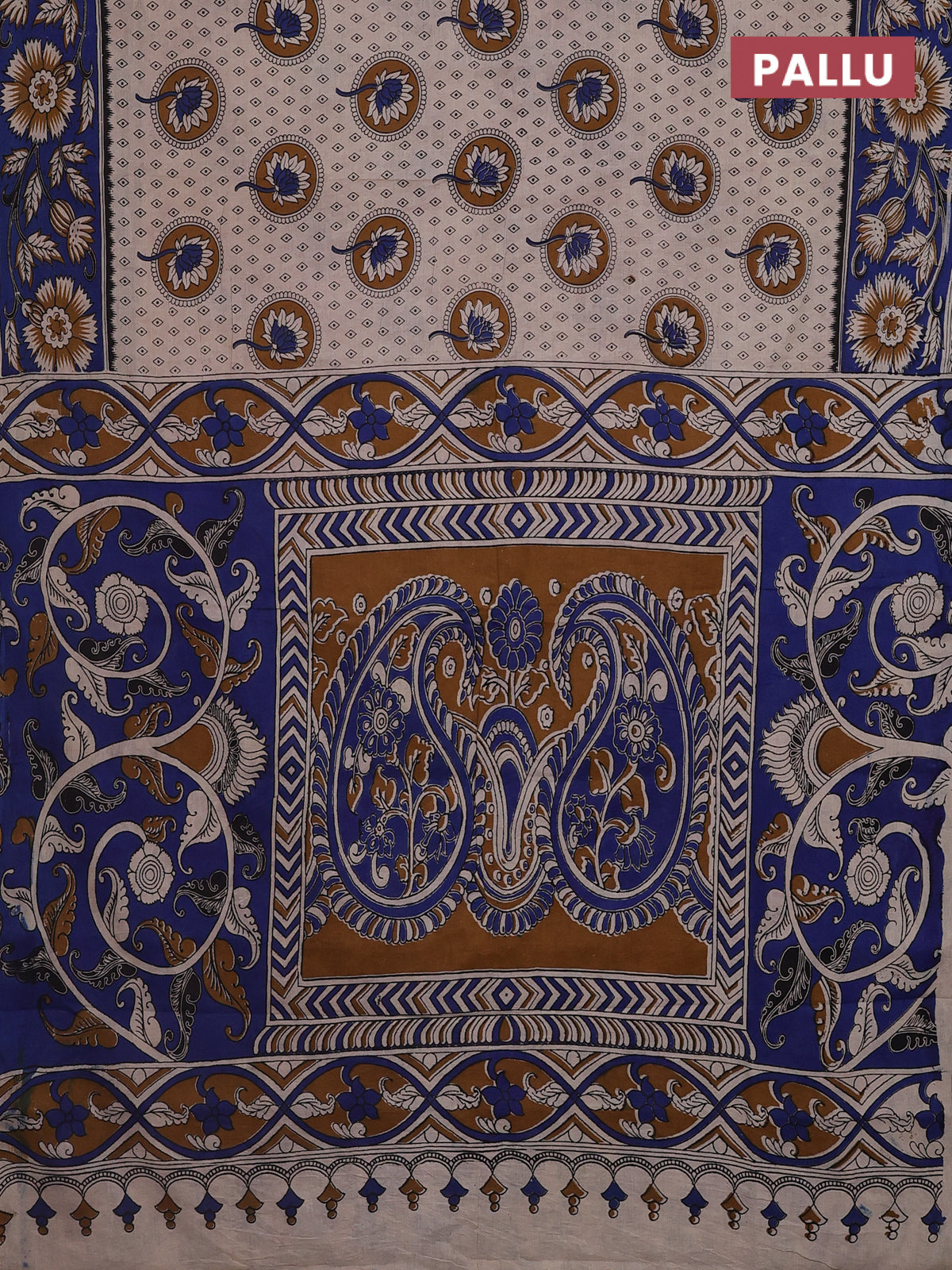 Kalamkari cotton saree beige and blue with butta prints and printed border