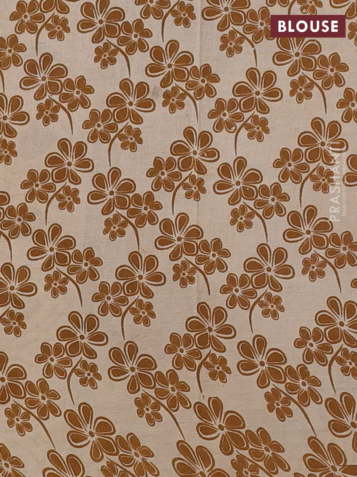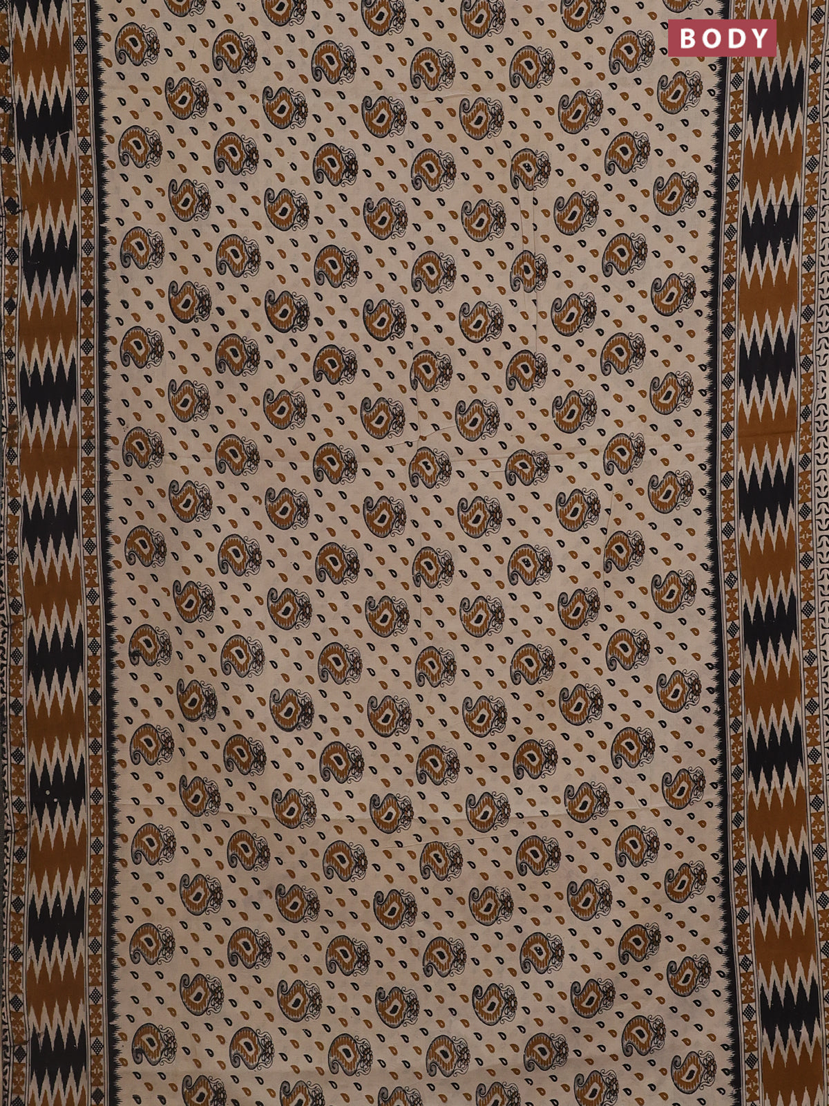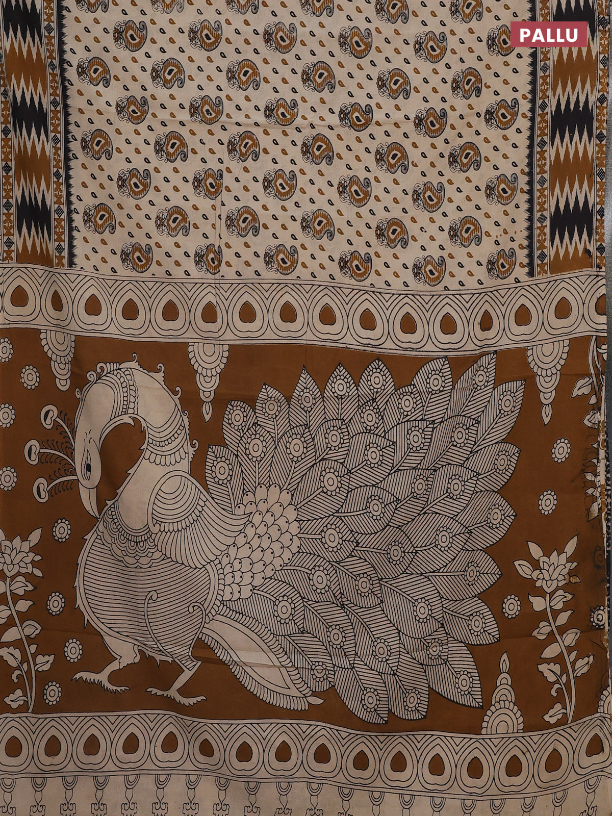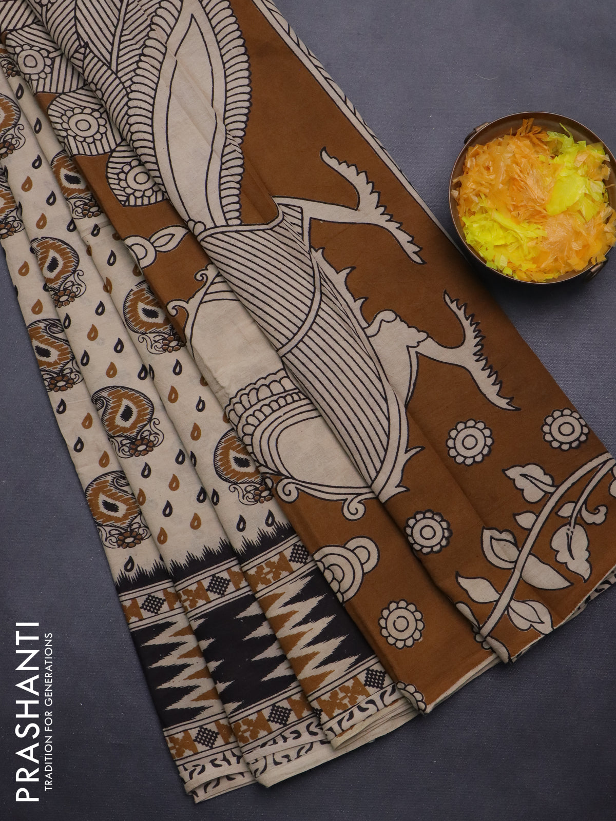 Kalamkari cotton saree beige and dark mustard with allover paisley butta prints and printed border
