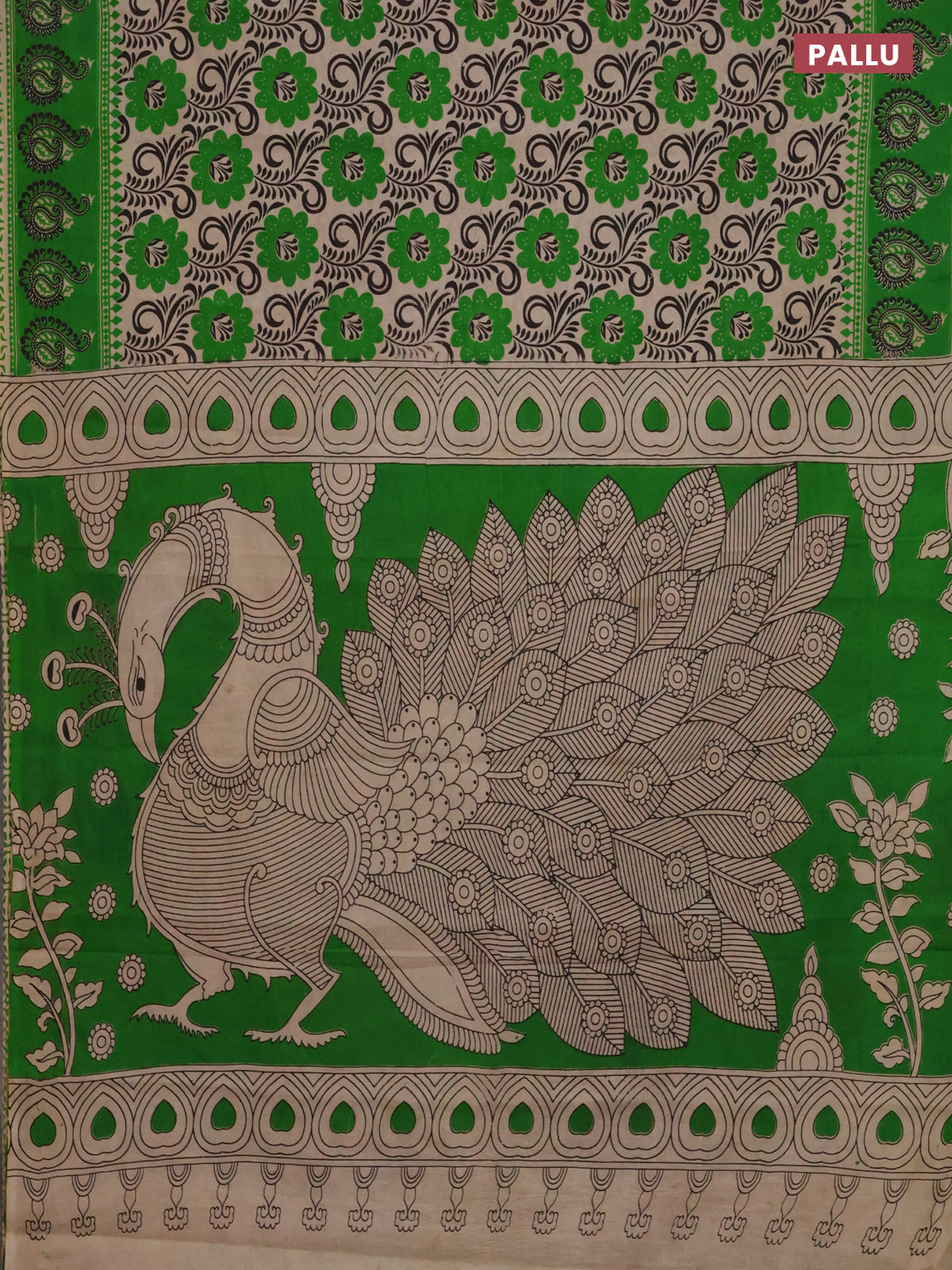 Kalamkari cotton saree beige and green with allover prints and printed border