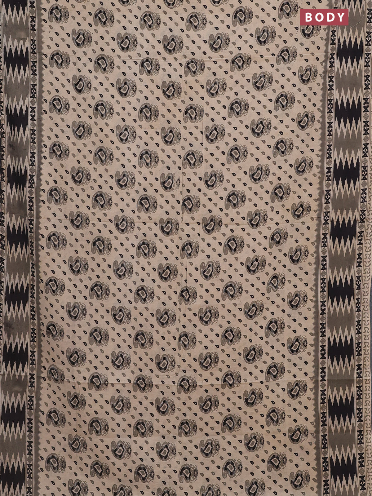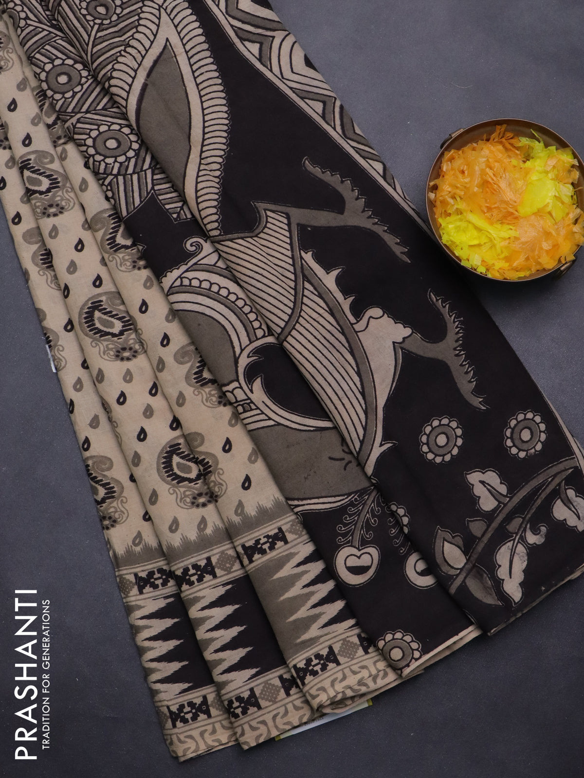 Kalamkari cotton saree beige and grey with allover paisley butta prints and printed border