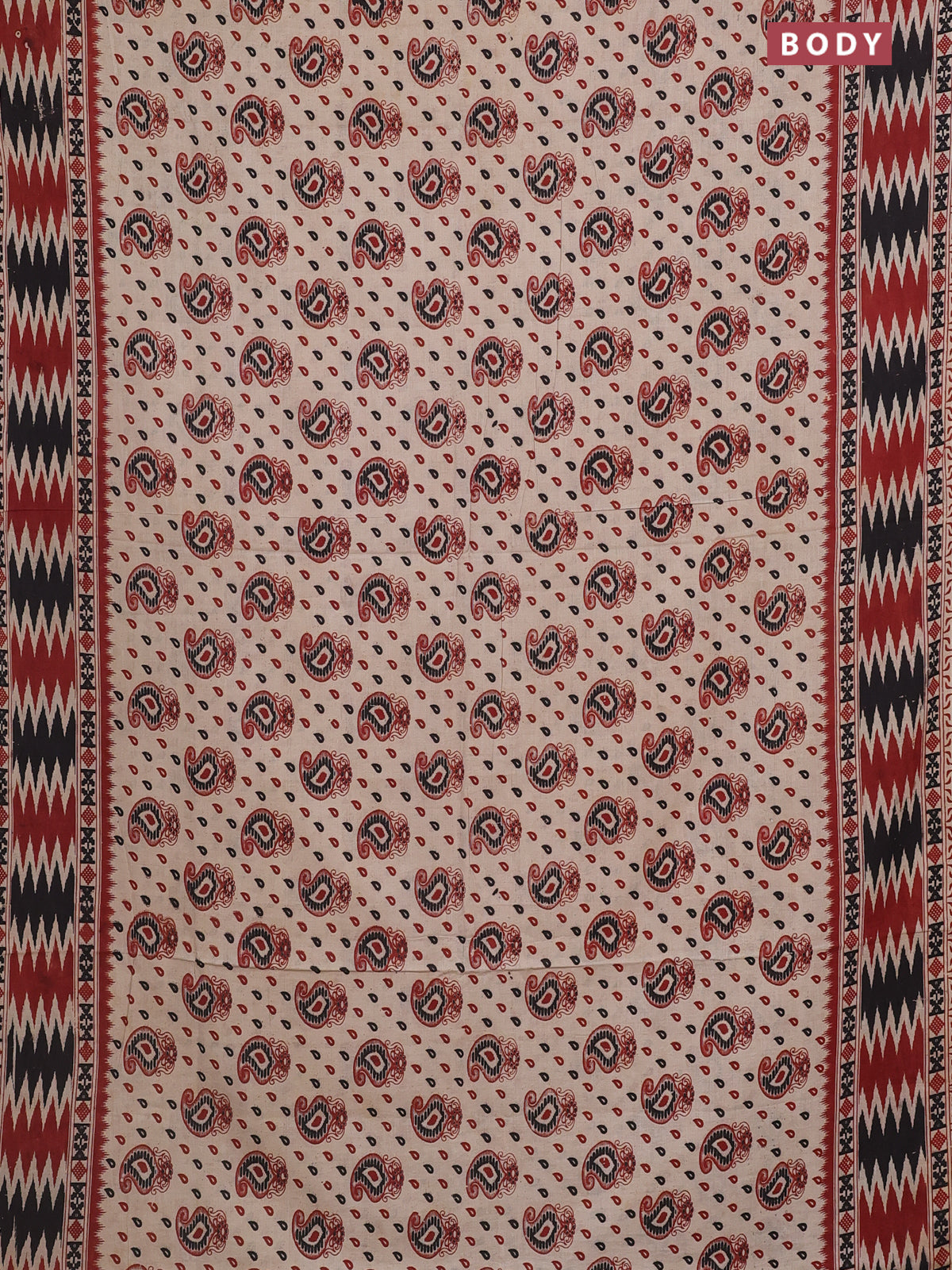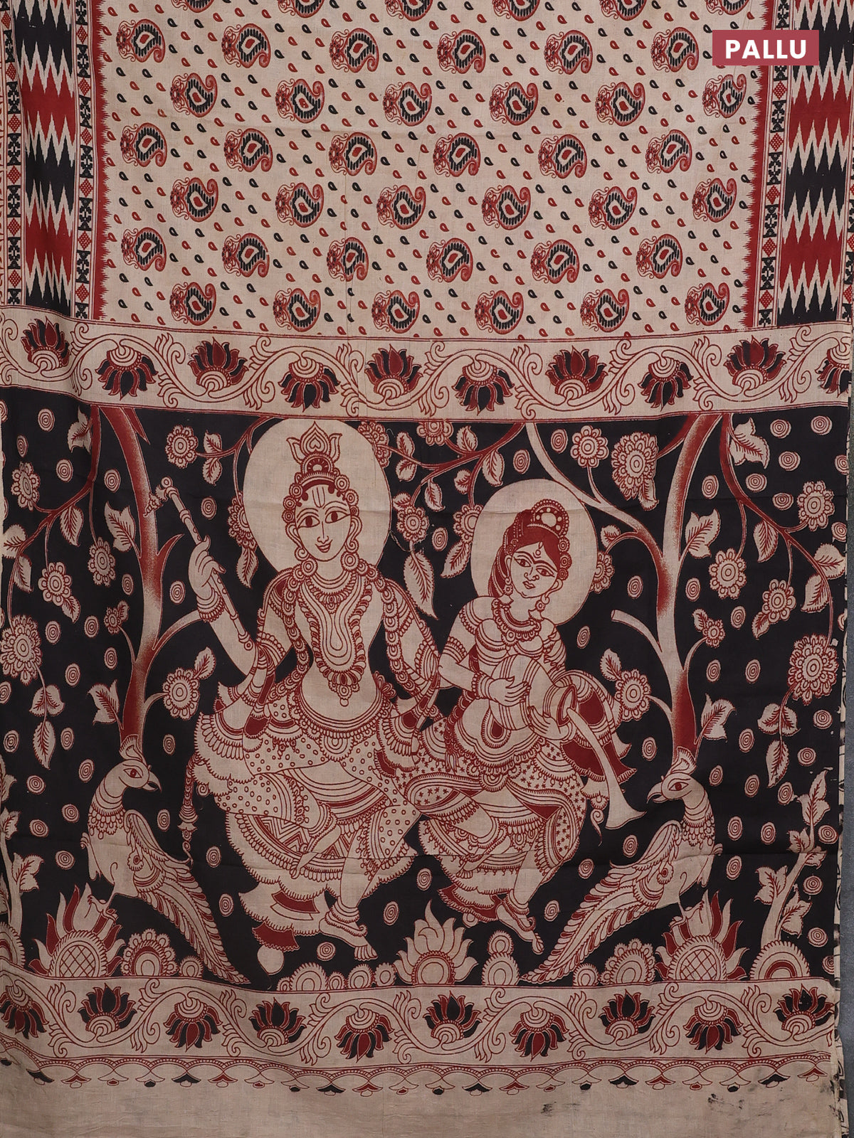 Kalamkari cotton saree beige and maroon with allover paisley butta prints and printed border