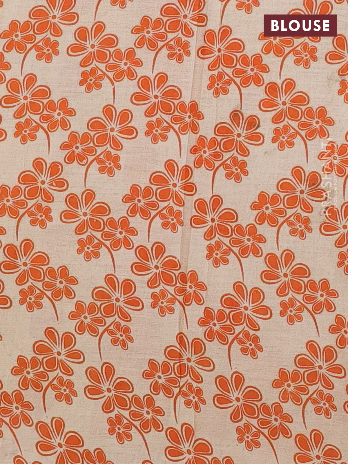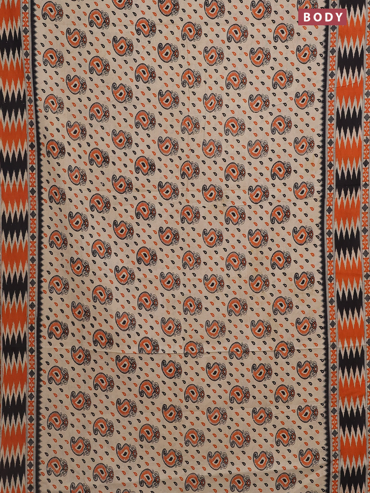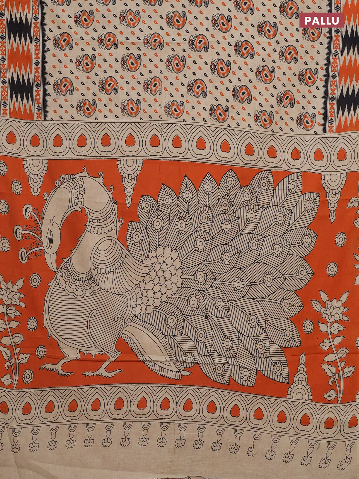 Kalamkari cotton saree beige and orange with allover paisley butta prints and printed border