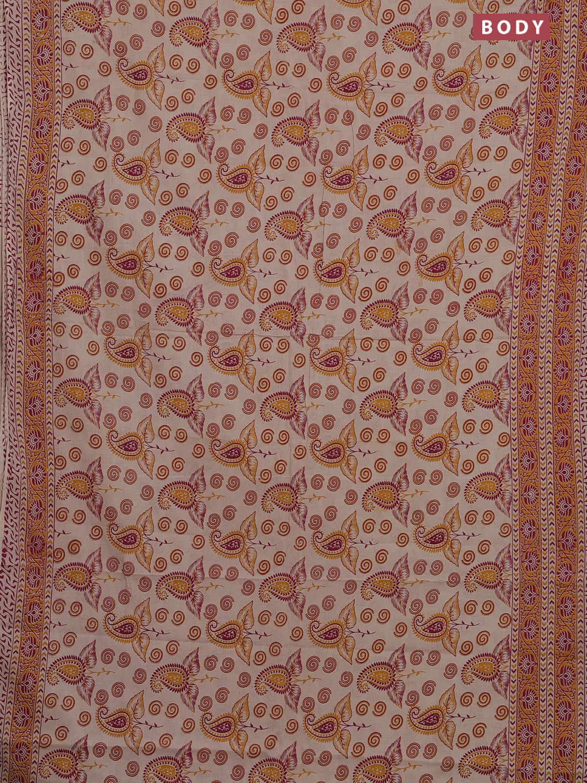 Kalamkari cotton saree beige and orange with allover prints and printed border