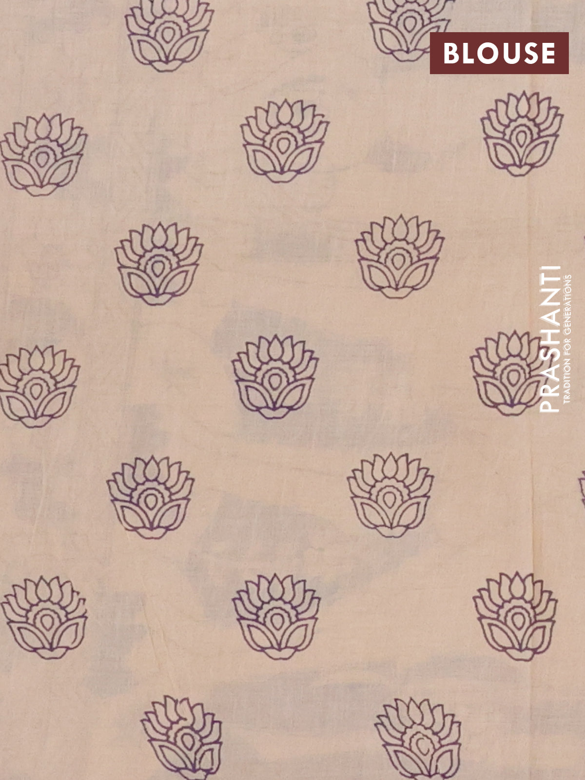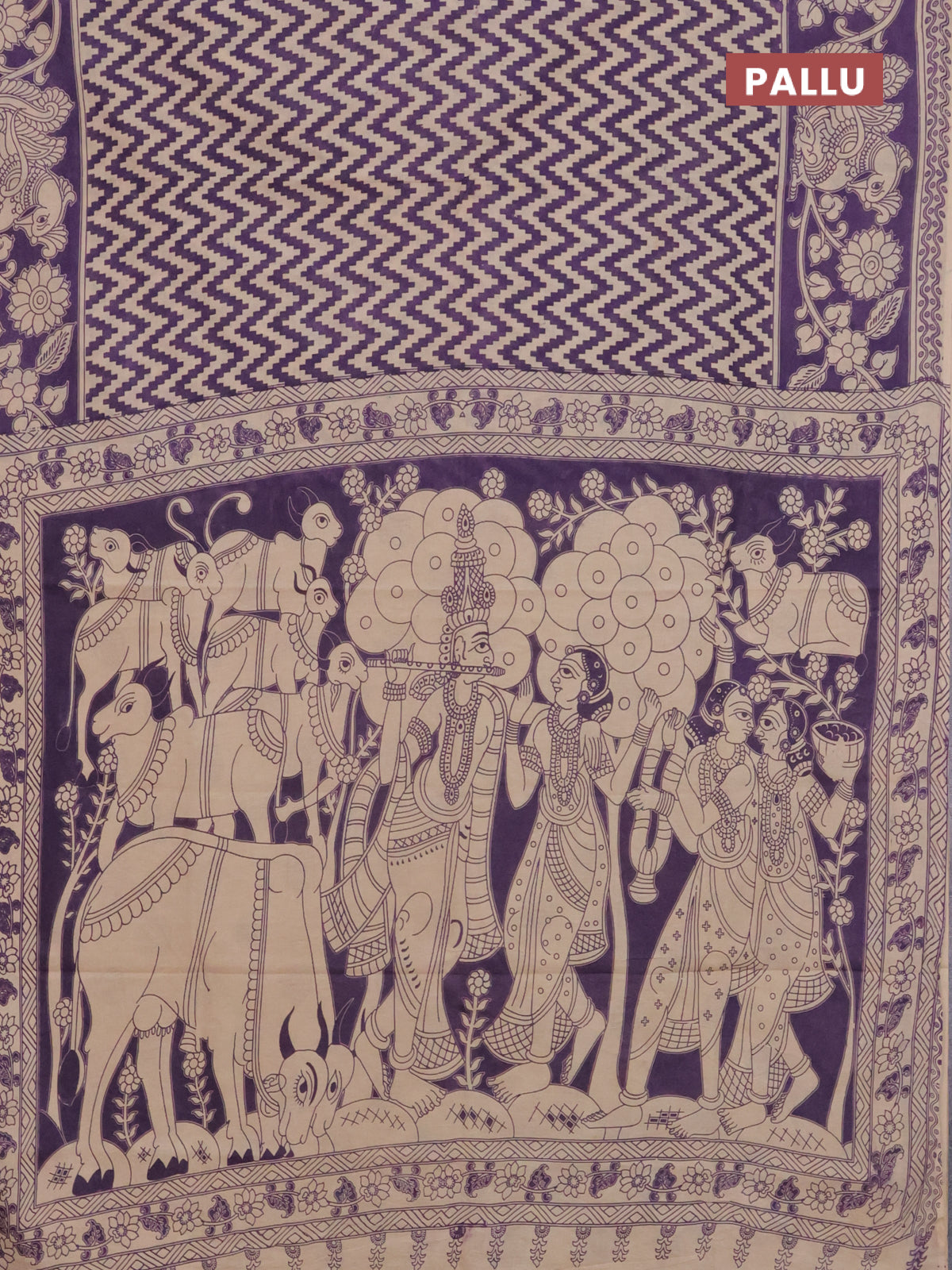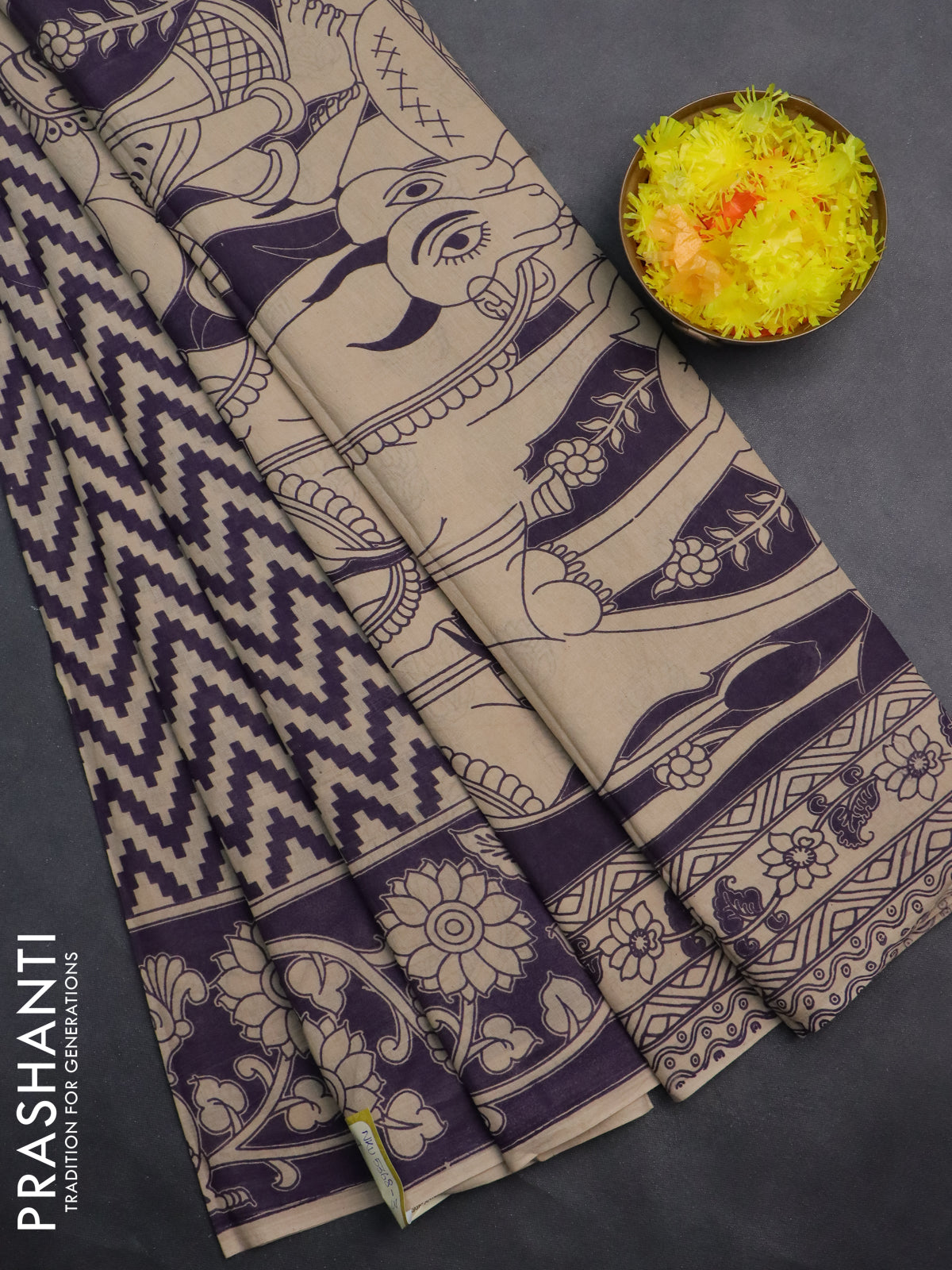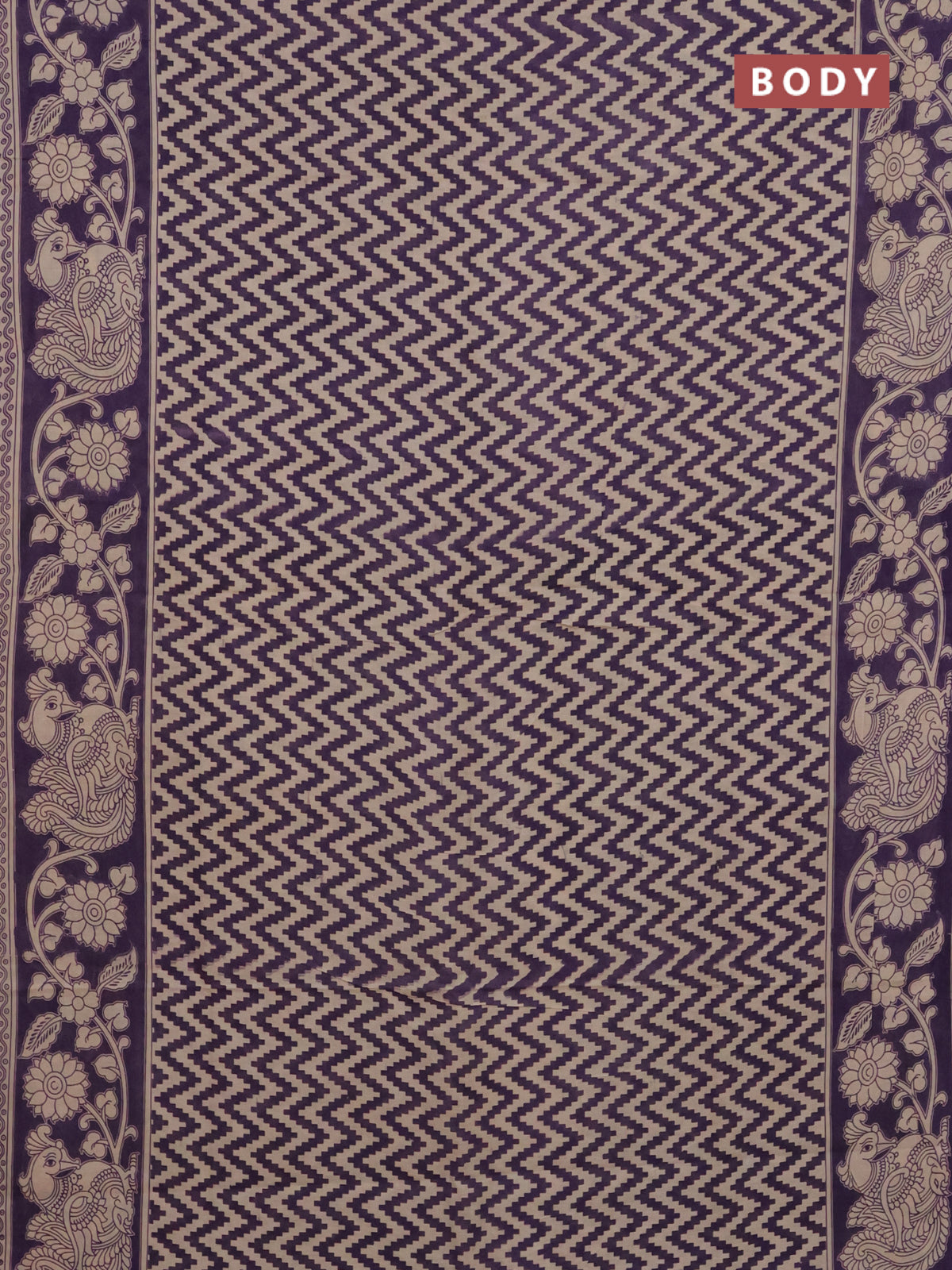 Kalamkari cotton saree beige and violet with allover zig zag prints and printed border