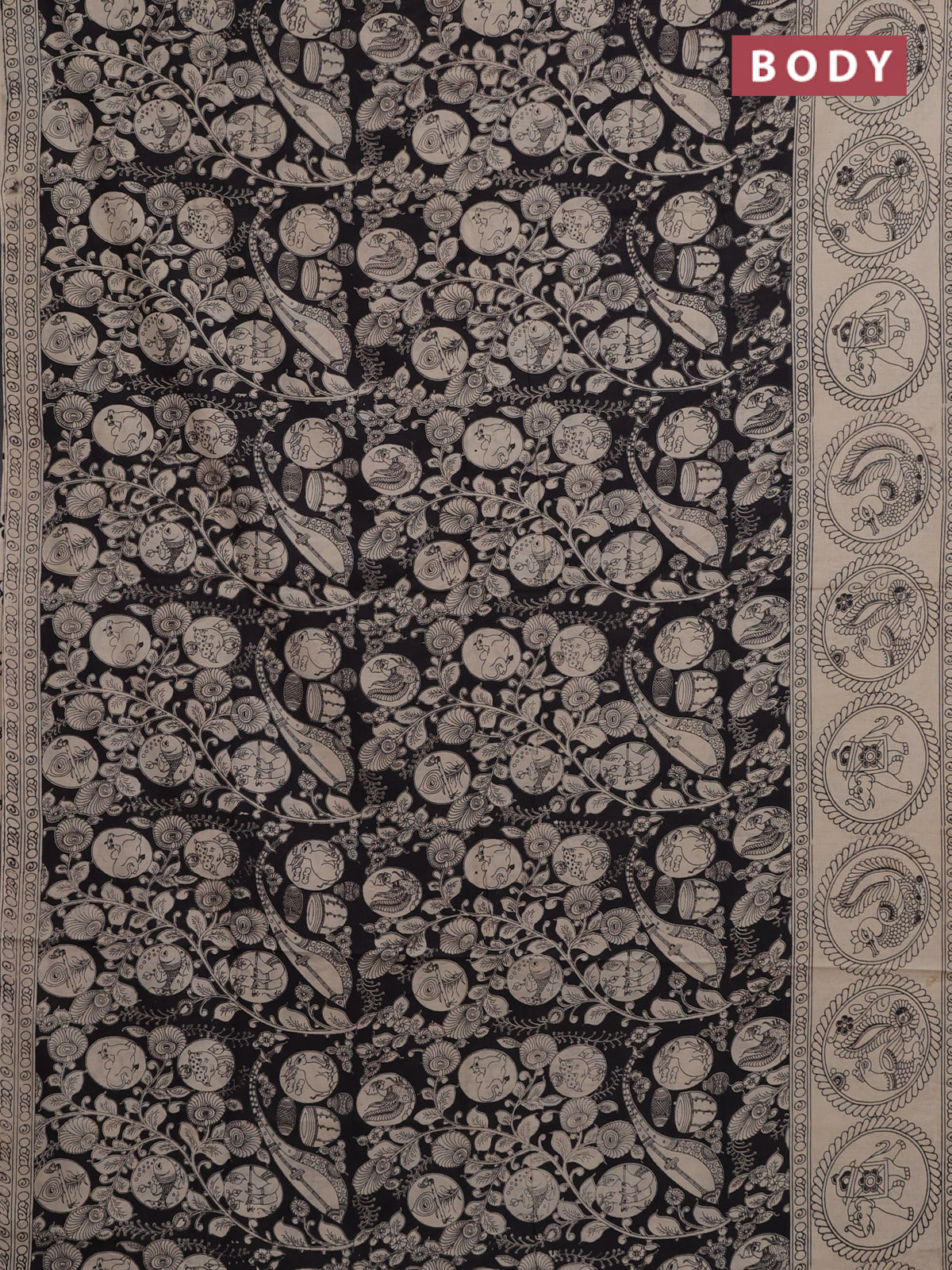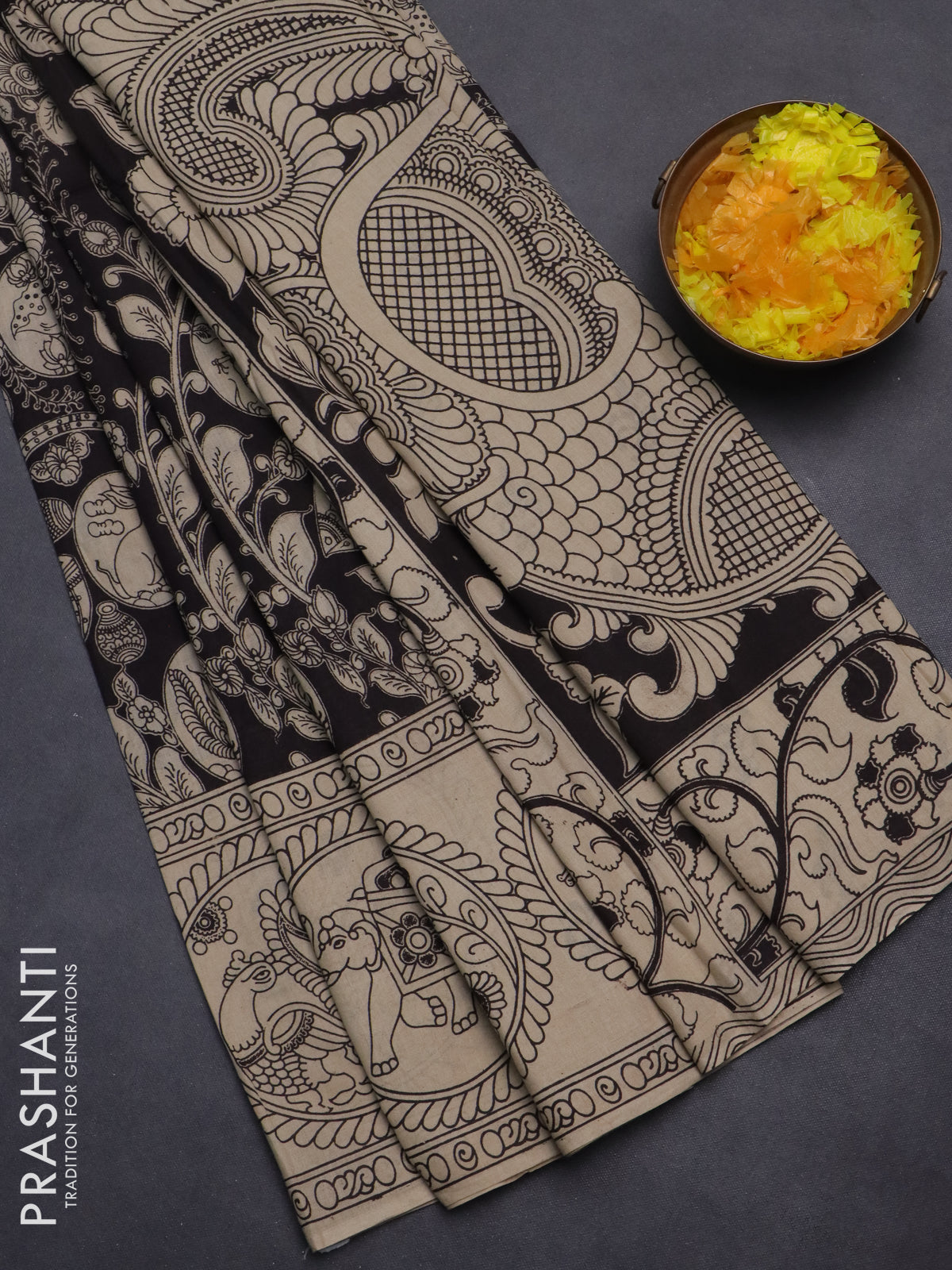 Kalamkari cotton saree black and beige with allover prints and printed border