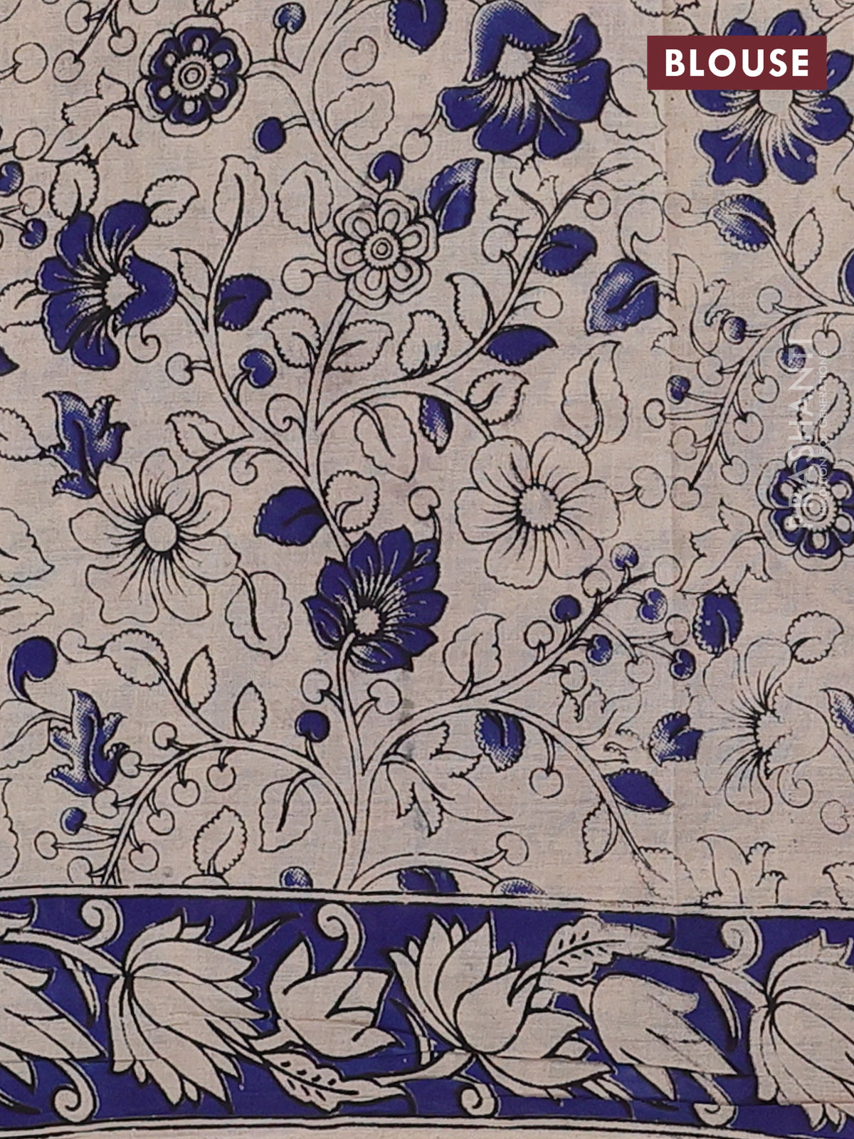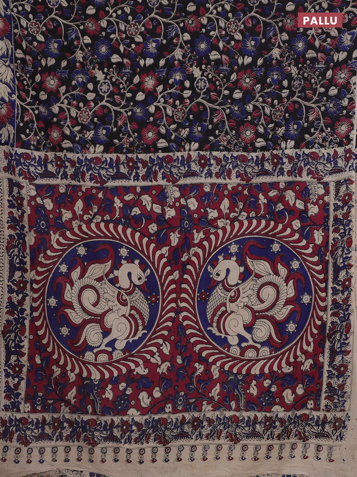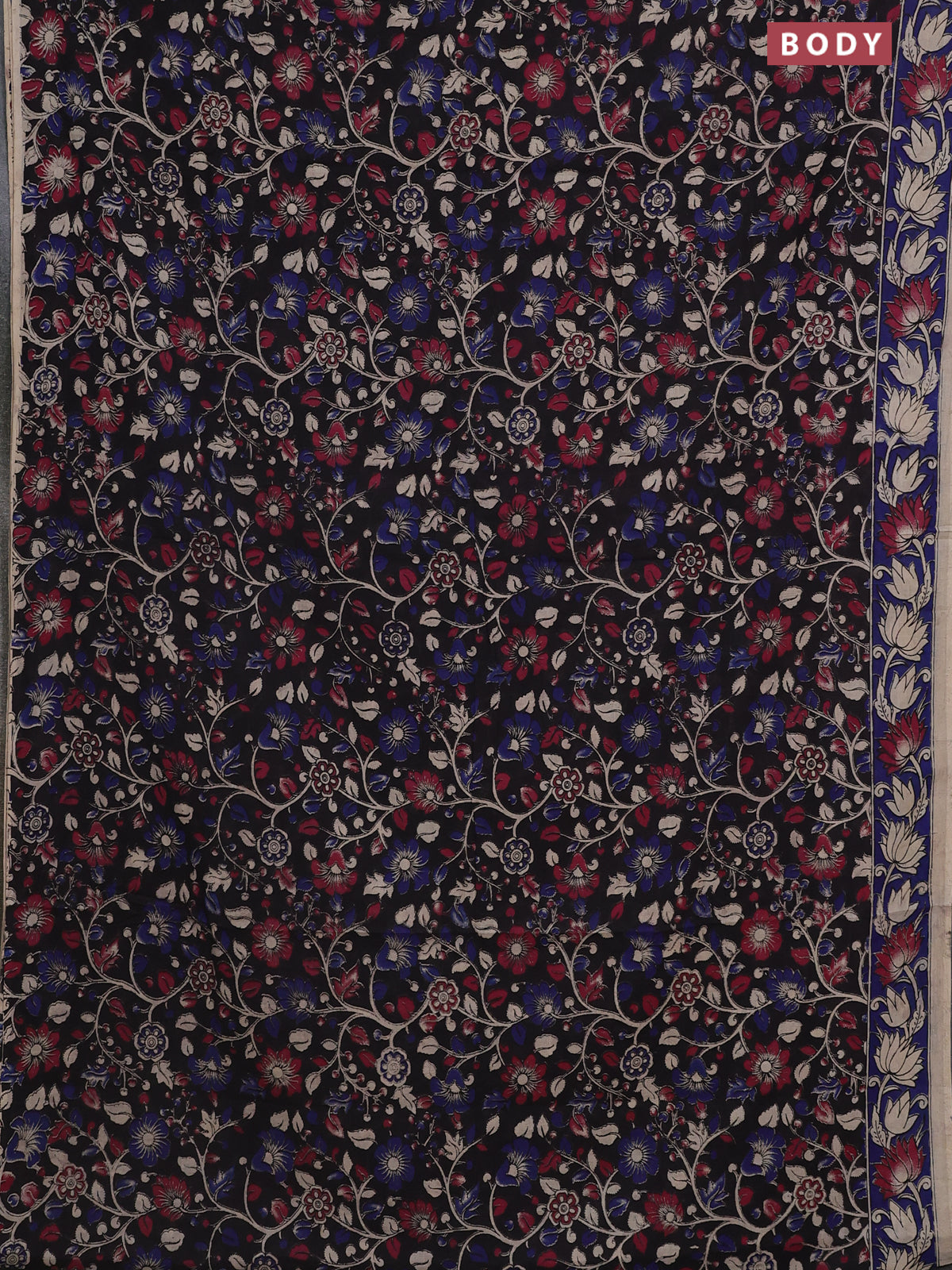 Kalamkari cotton saree black and blue with allover prints and printed border