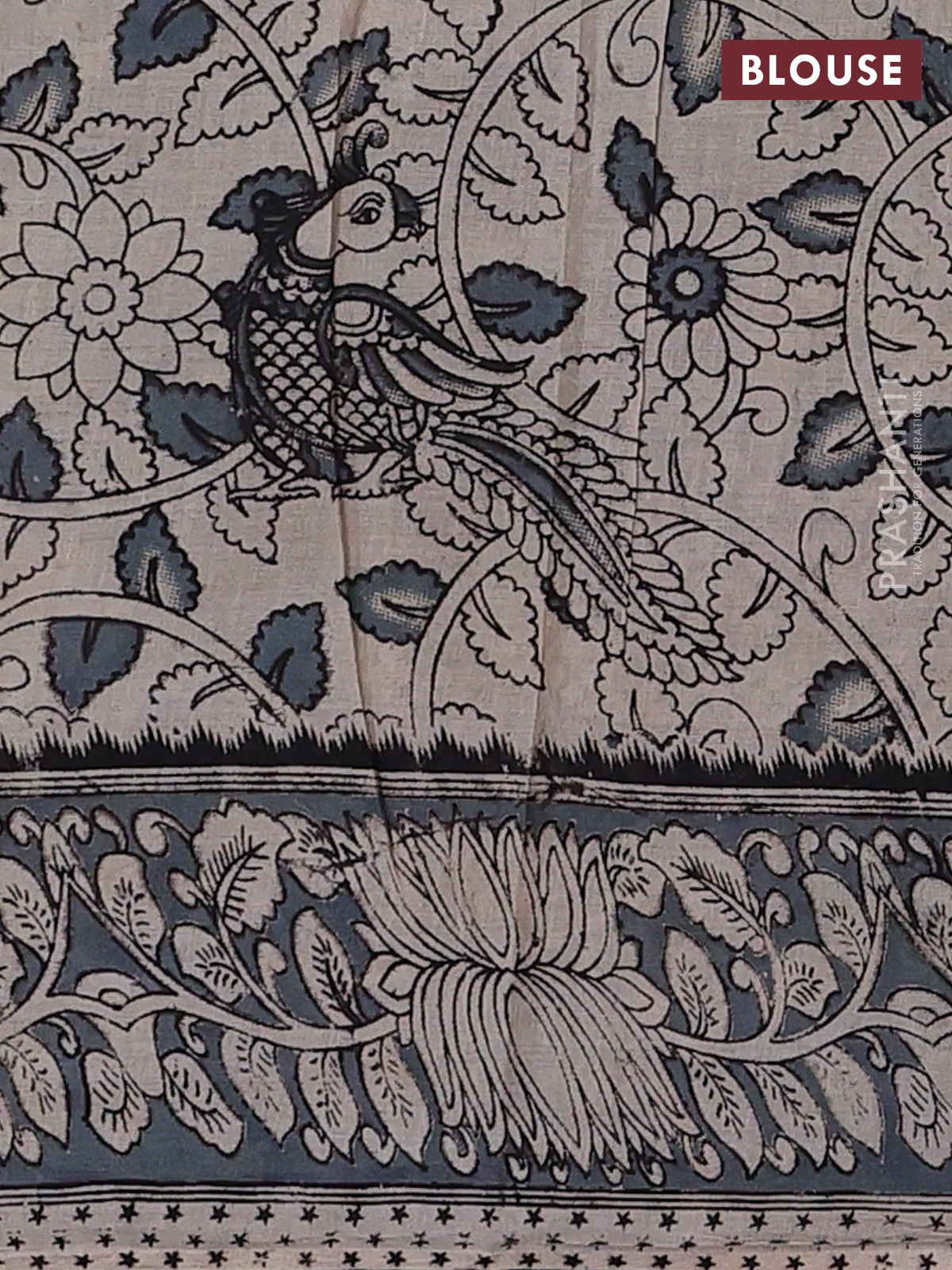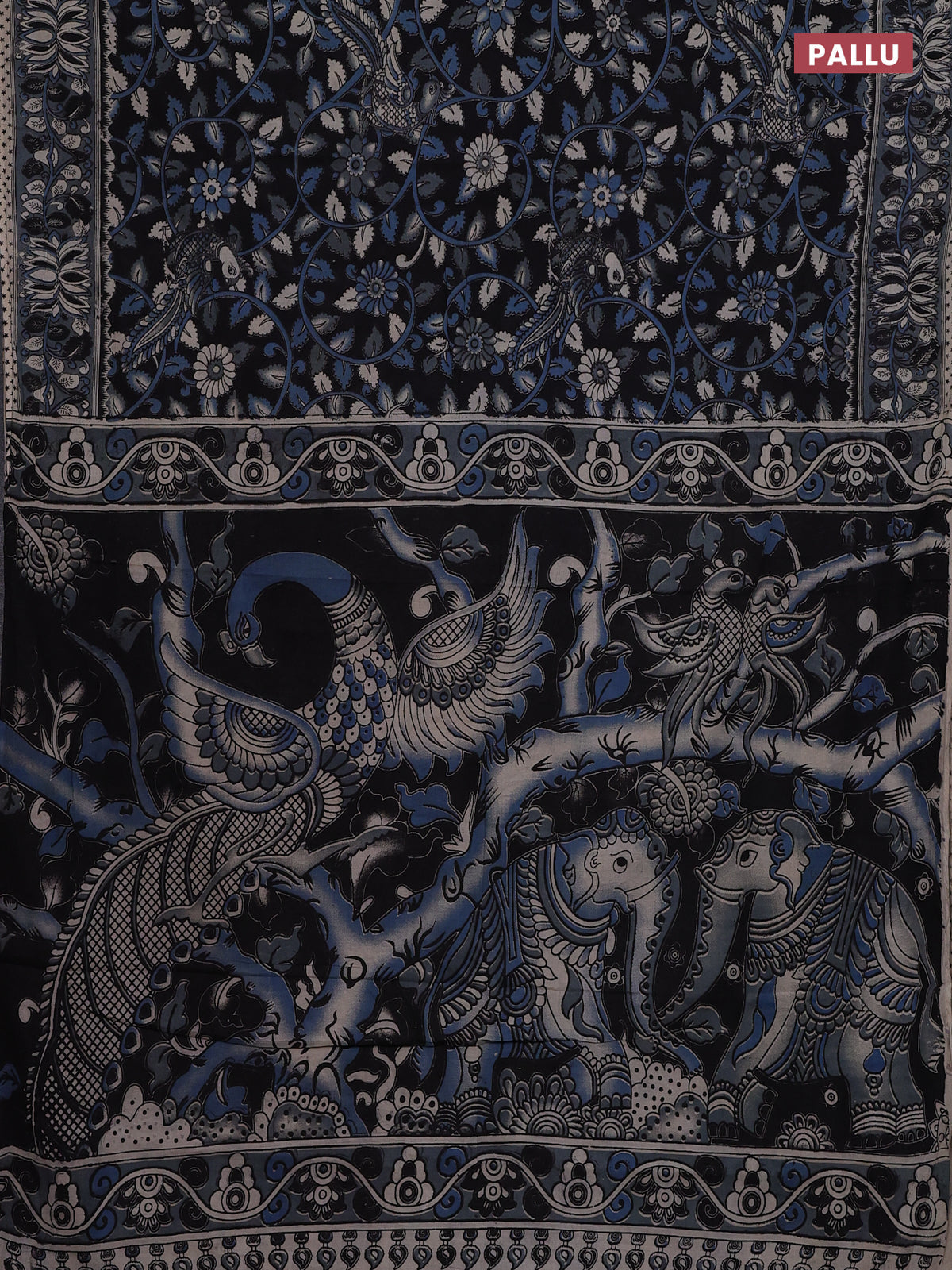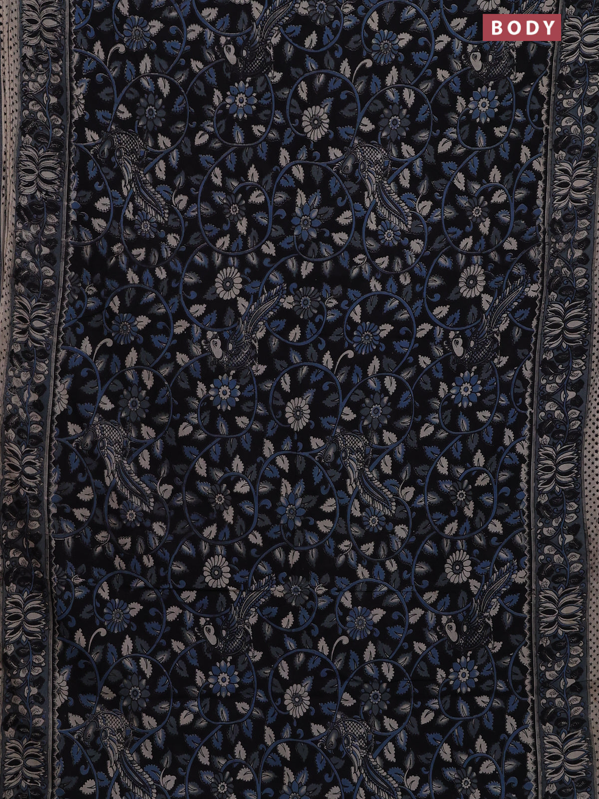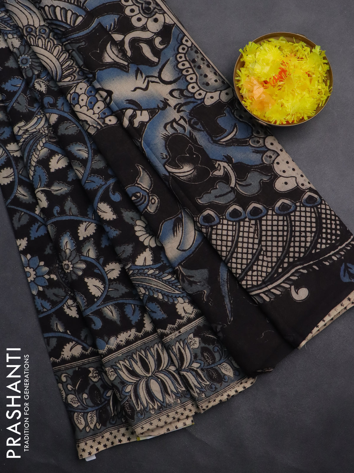 Kalamkari cotton saree black and bluish grey with allover prints and printed border