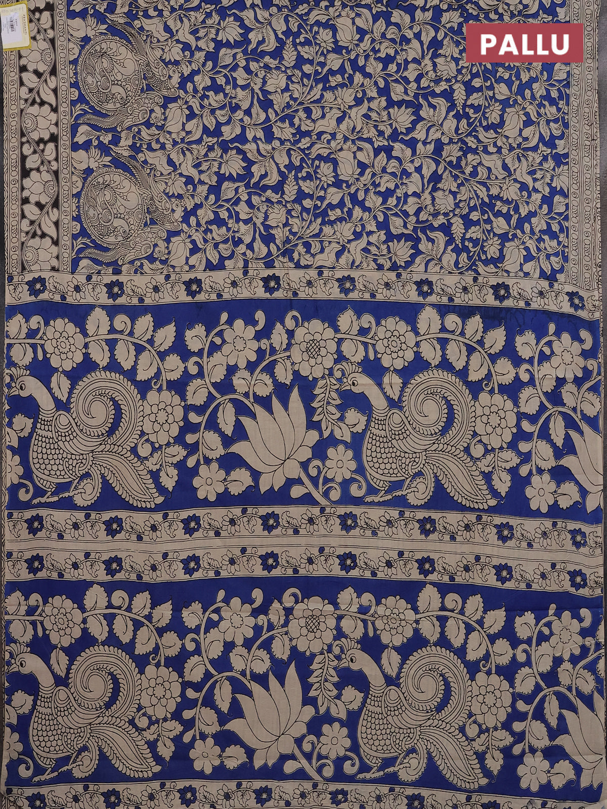 Kalamkari cotton saree blue and black with allover prints and printed border