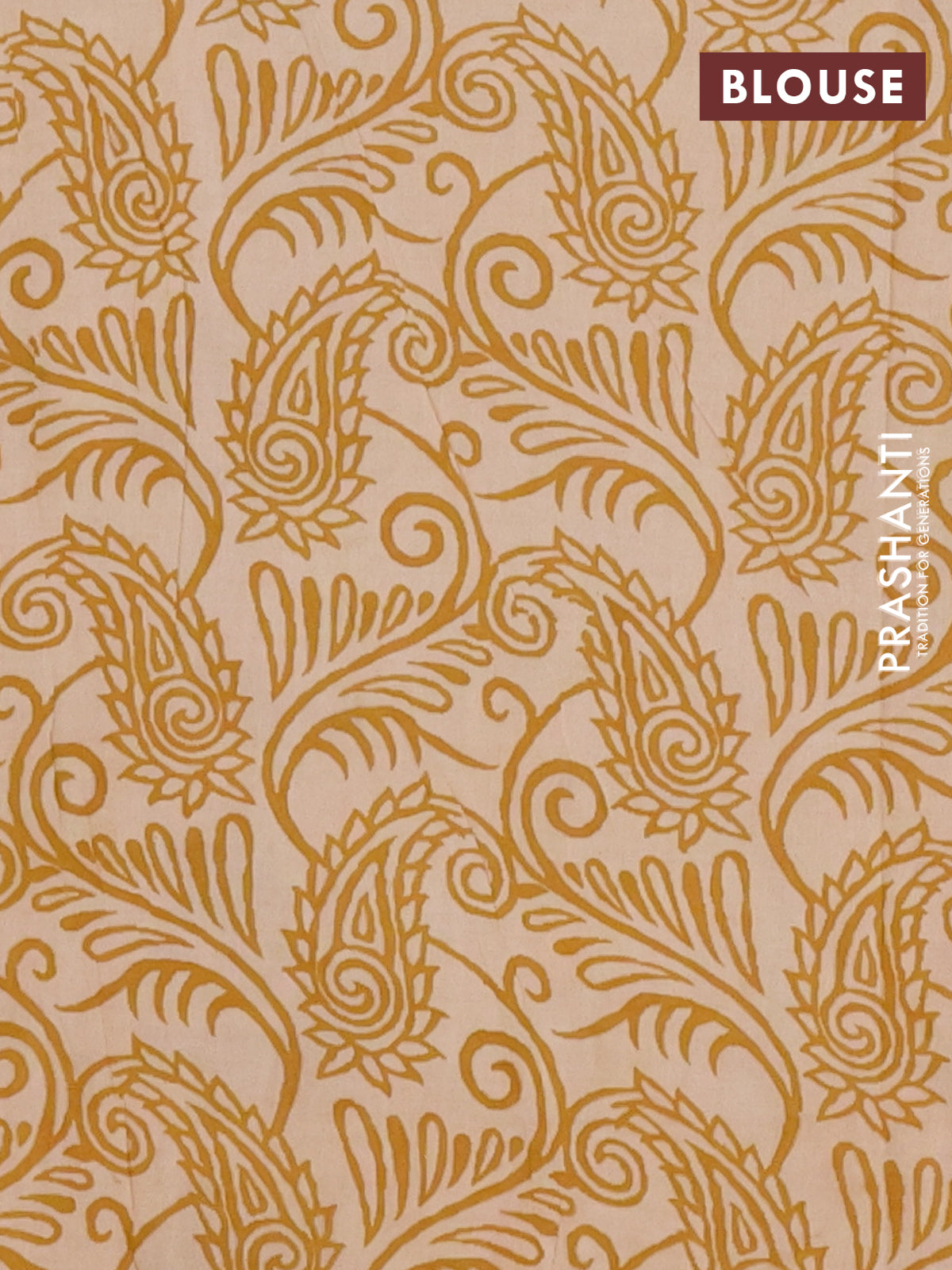 Kalamkari cotton saree dark mustard and beige with elephant butta prints and printed border