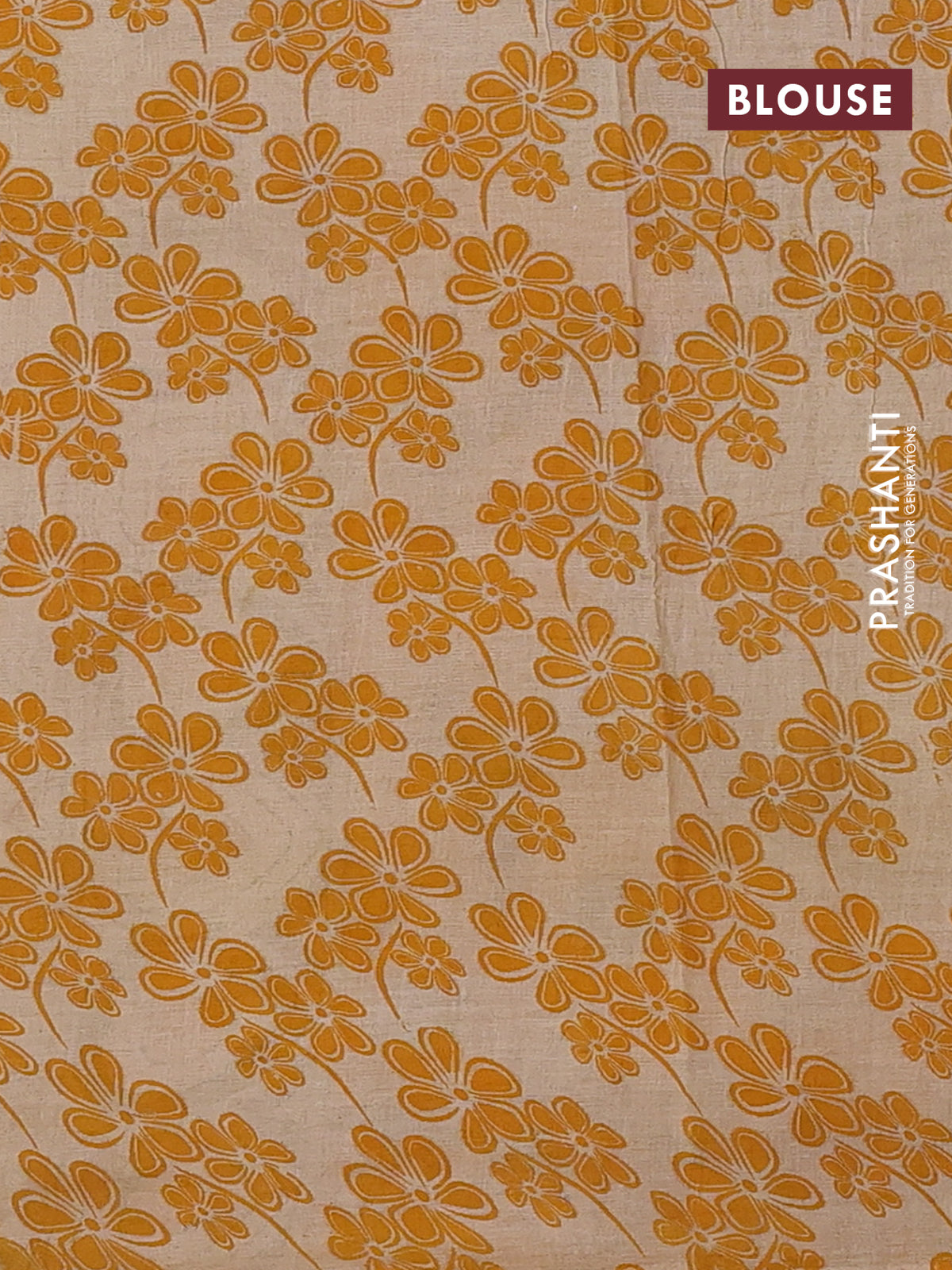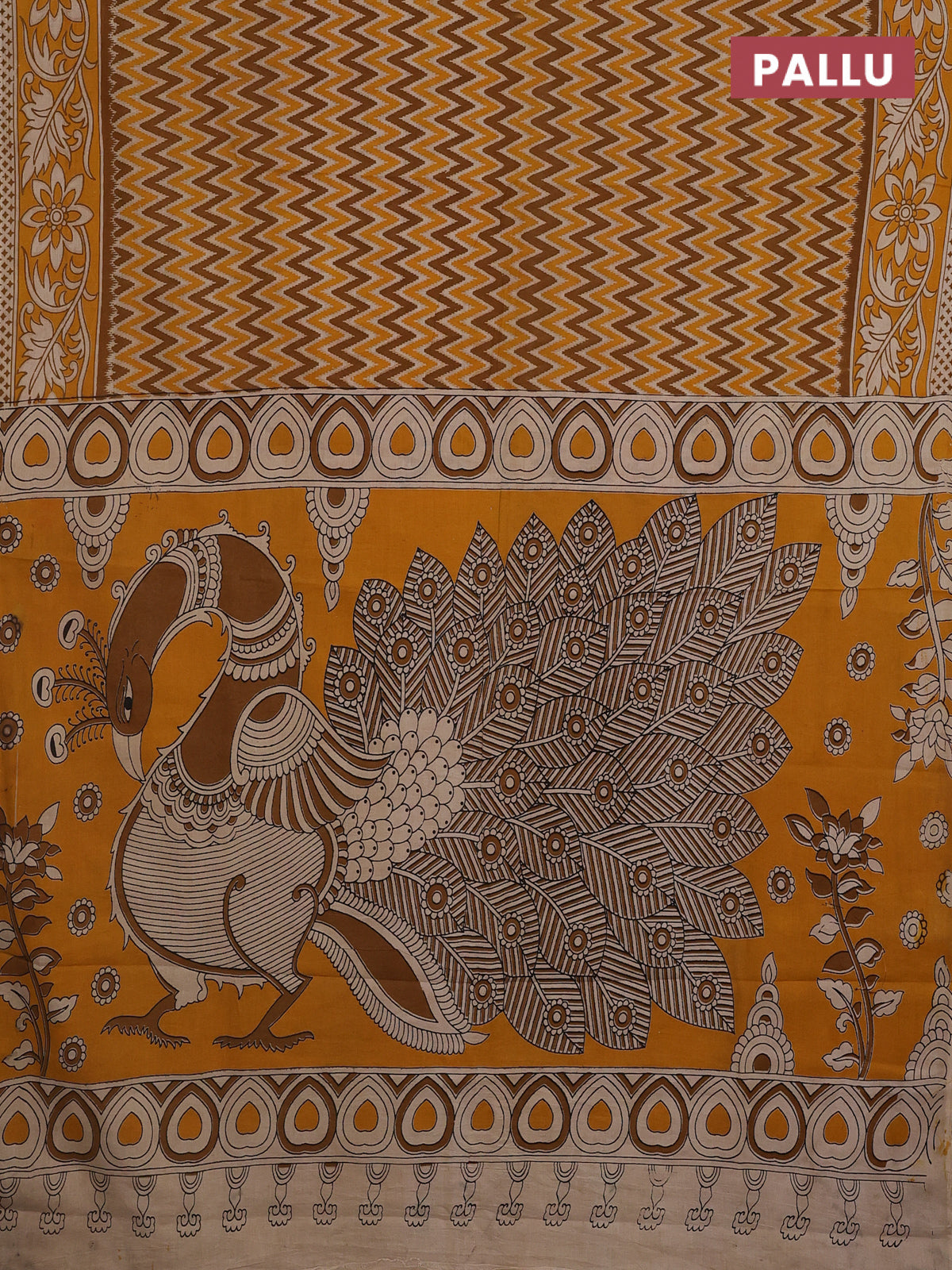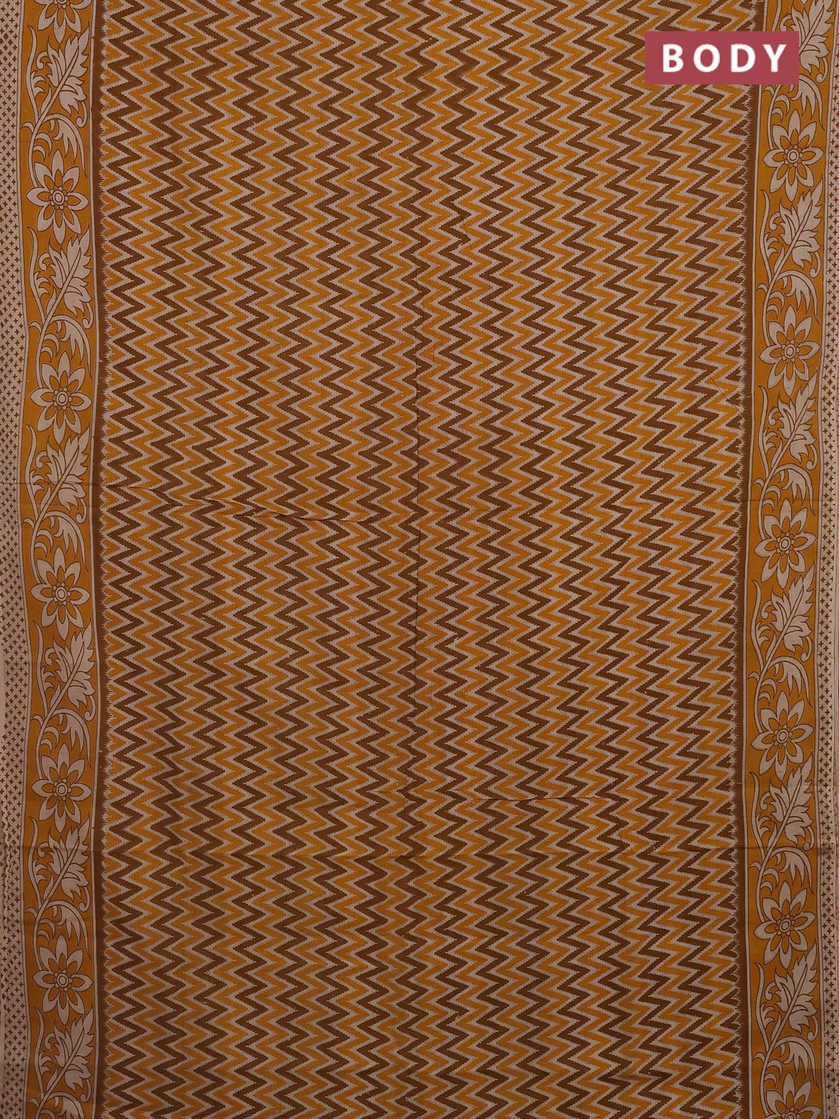 Kalamkari cotton saree dark mustard with allover zig zag prints and printed border