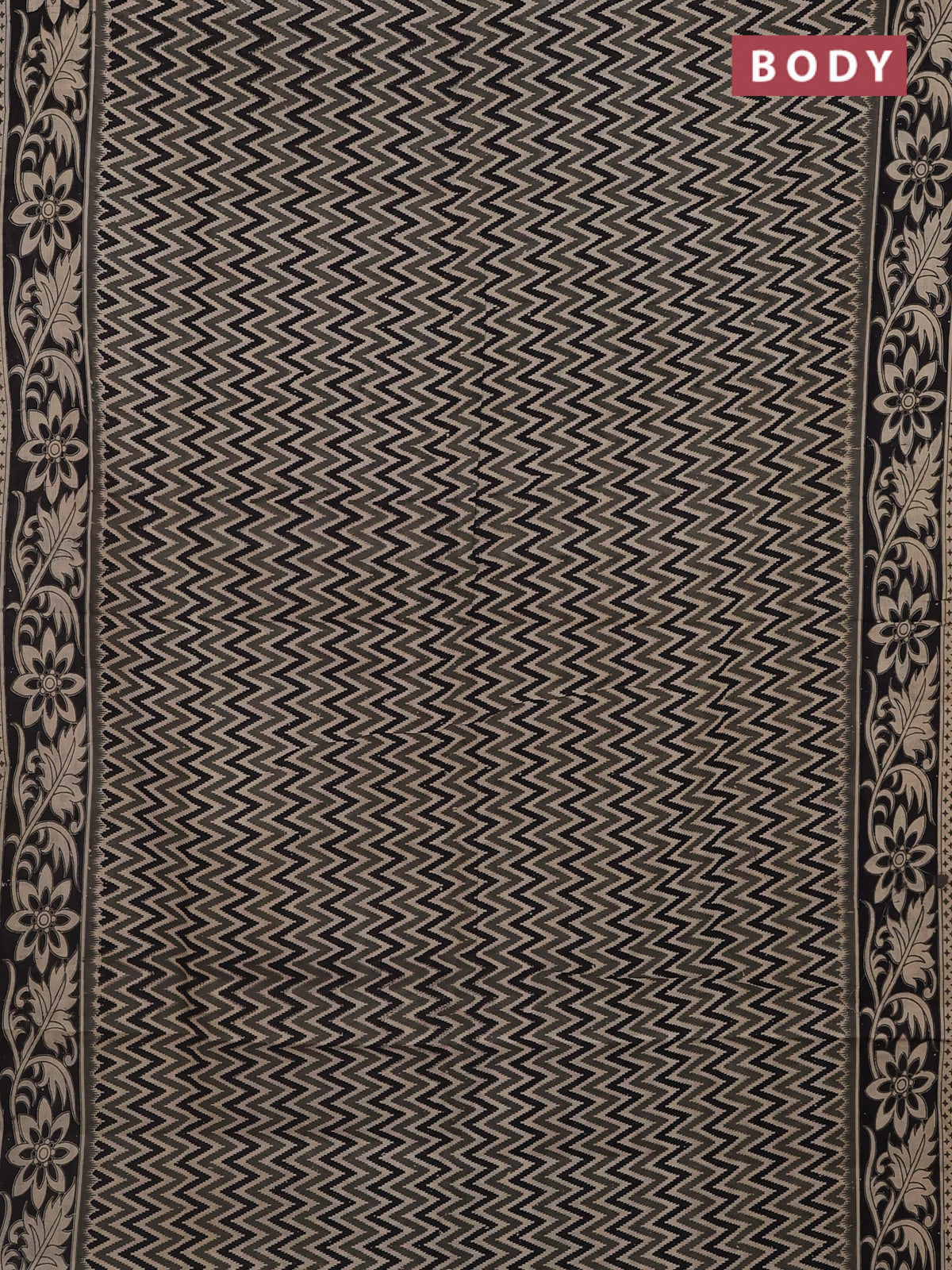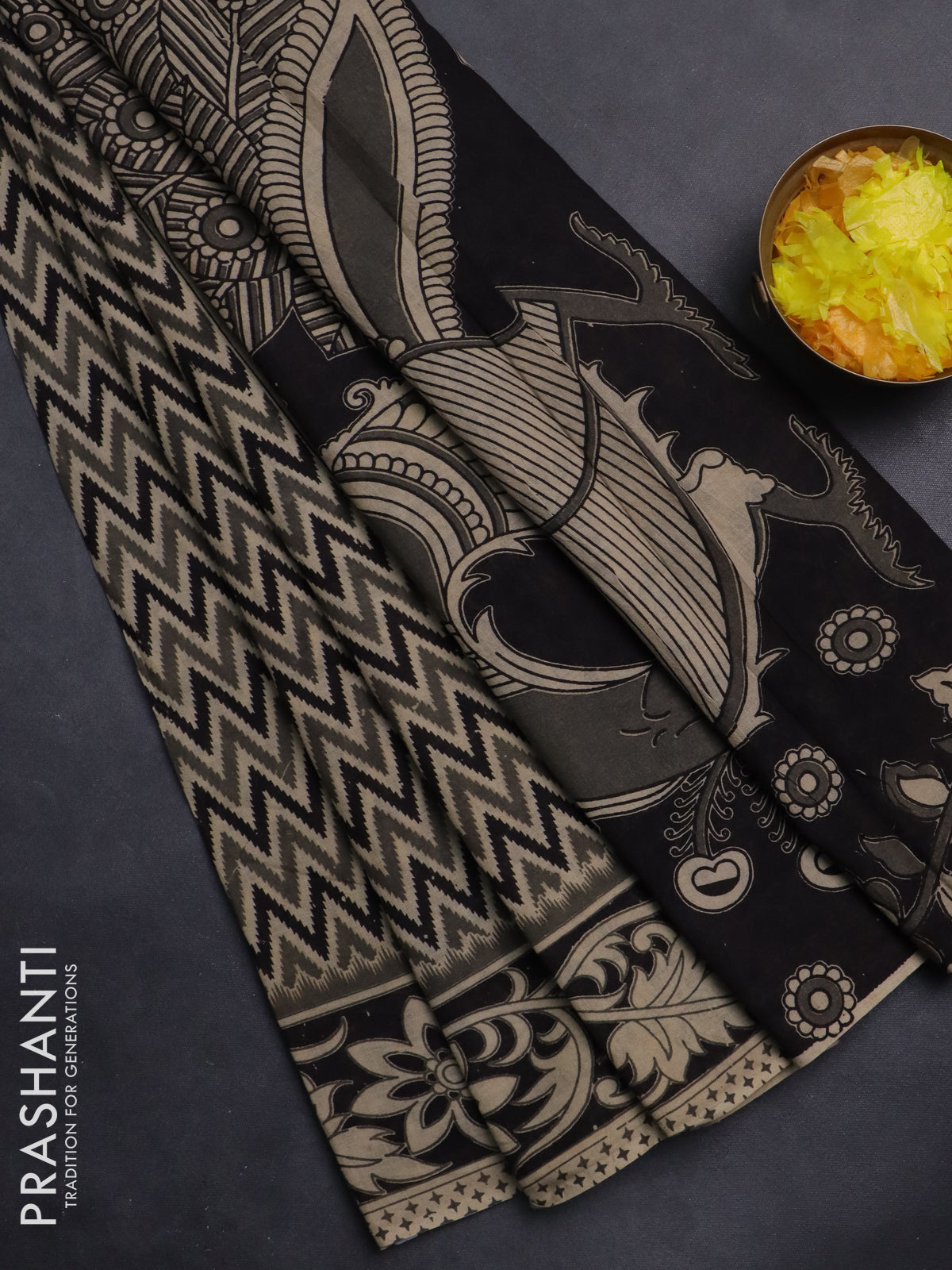 Kalamkari cotton saree grey and black with allover zig zag prints and printed border