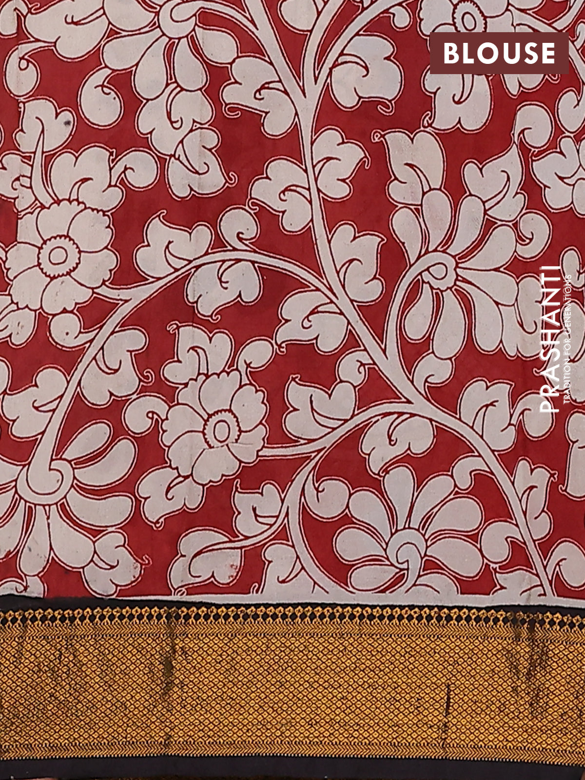 Kalamkari semi silk saree beige and black with allover prints and zari woven border