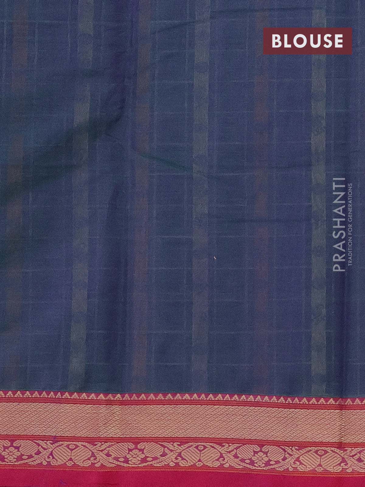 Kanchi cotton saree dual shade of bluish green and pink with allover zari checked pattern & 1000 buttas and thread woven border