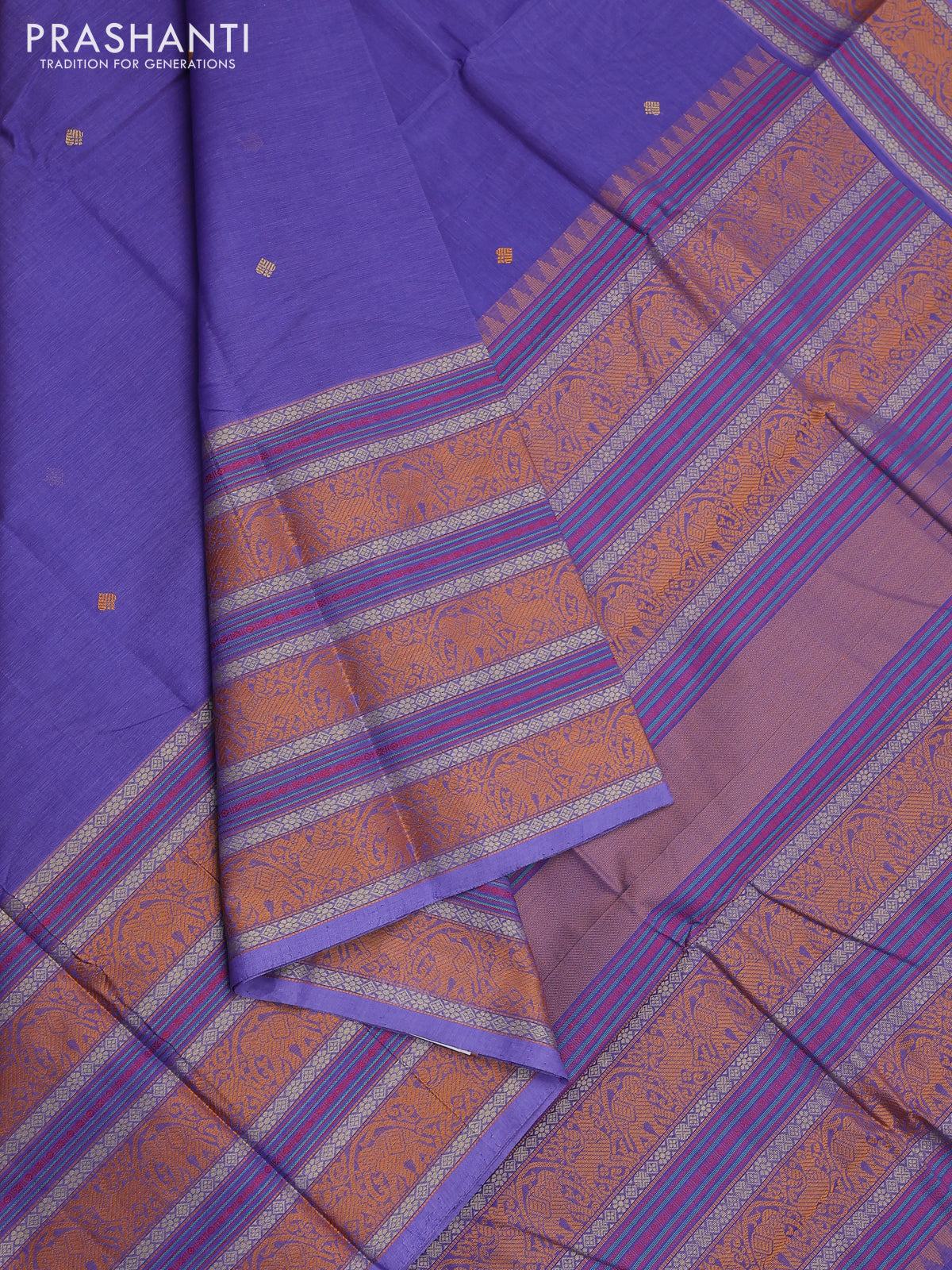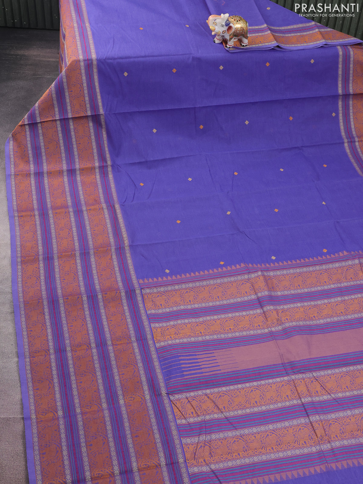 Kanchi cotton saree lavender with thread woven buttas and long thread woven border
