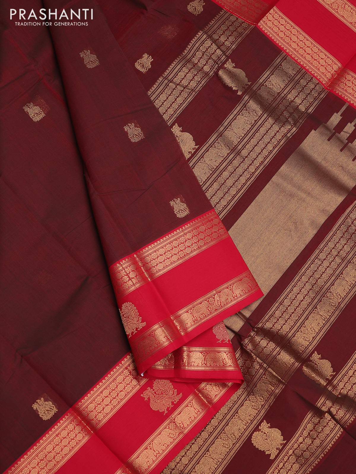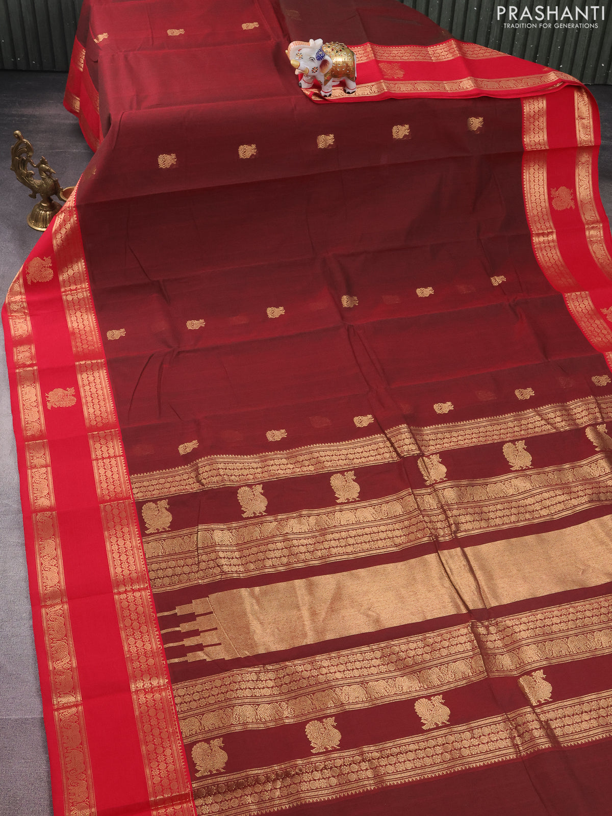 Kanchi cotton saree maroon and red with zari woven buttas and rettapet zari woven border