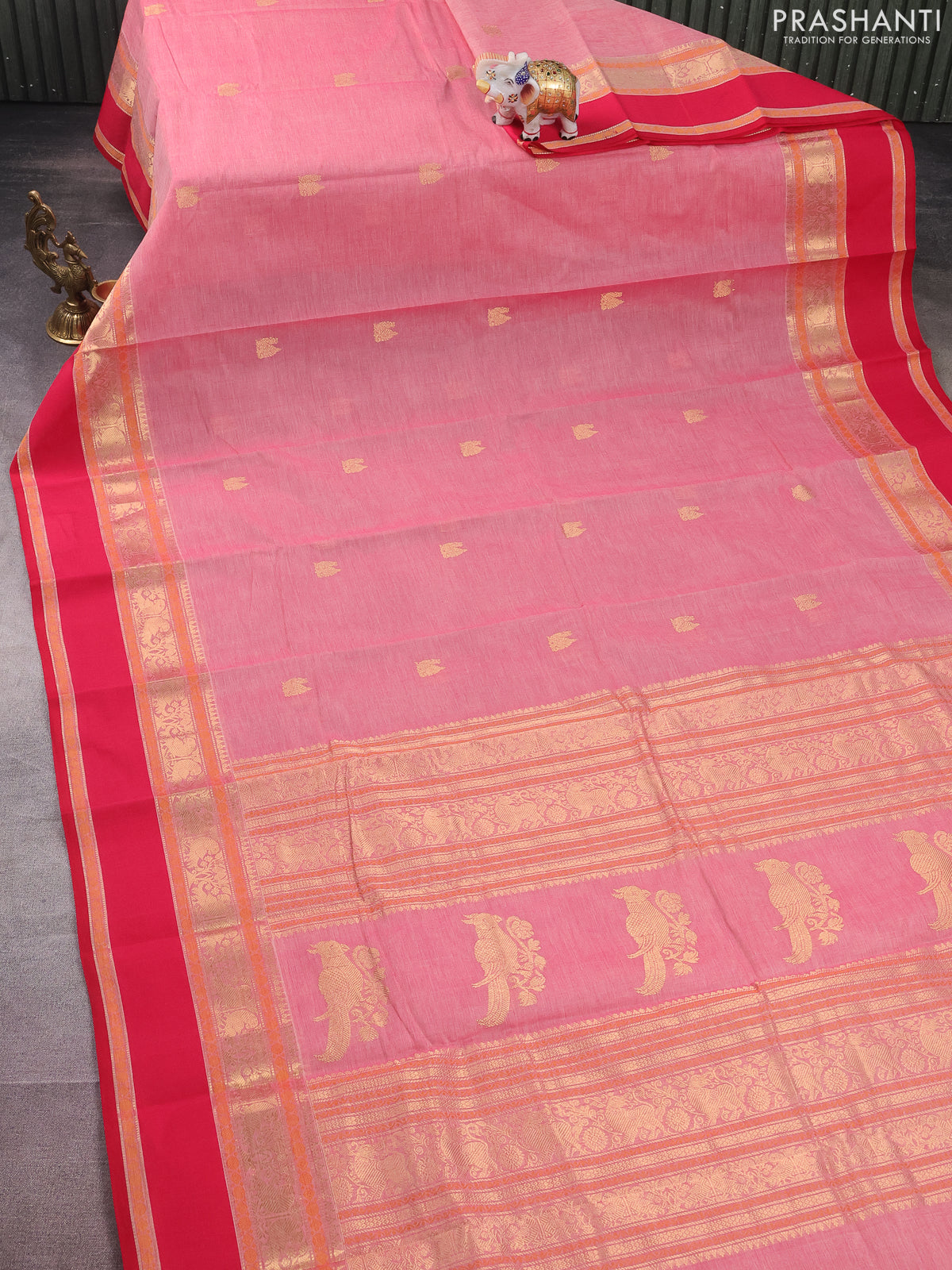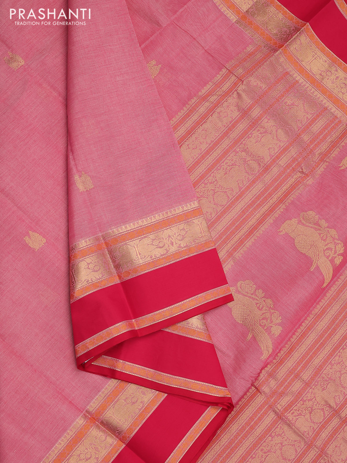Kanchi cotton saree peach shade and pink with annam zari woven buttas and rettapet zari woven border