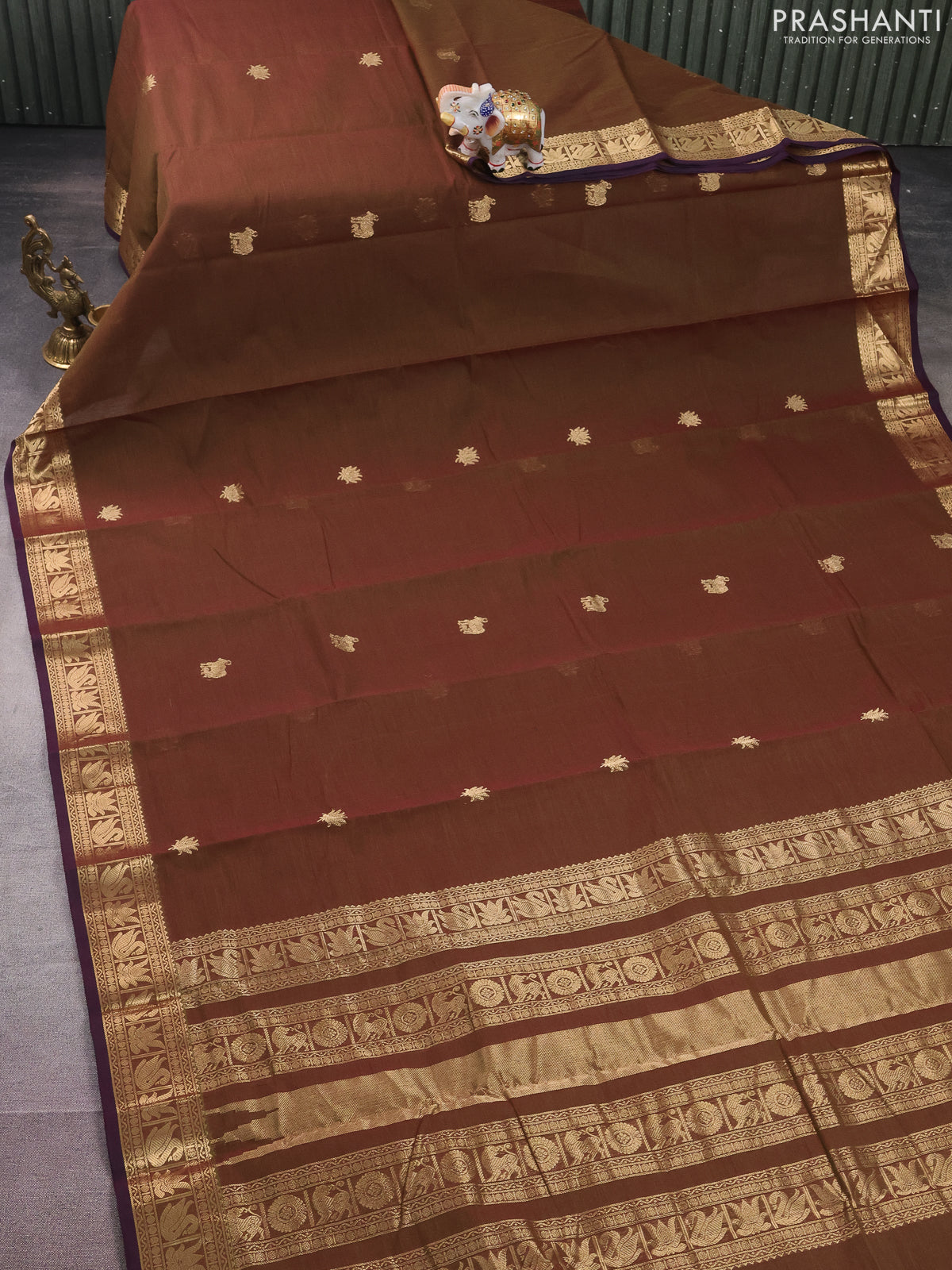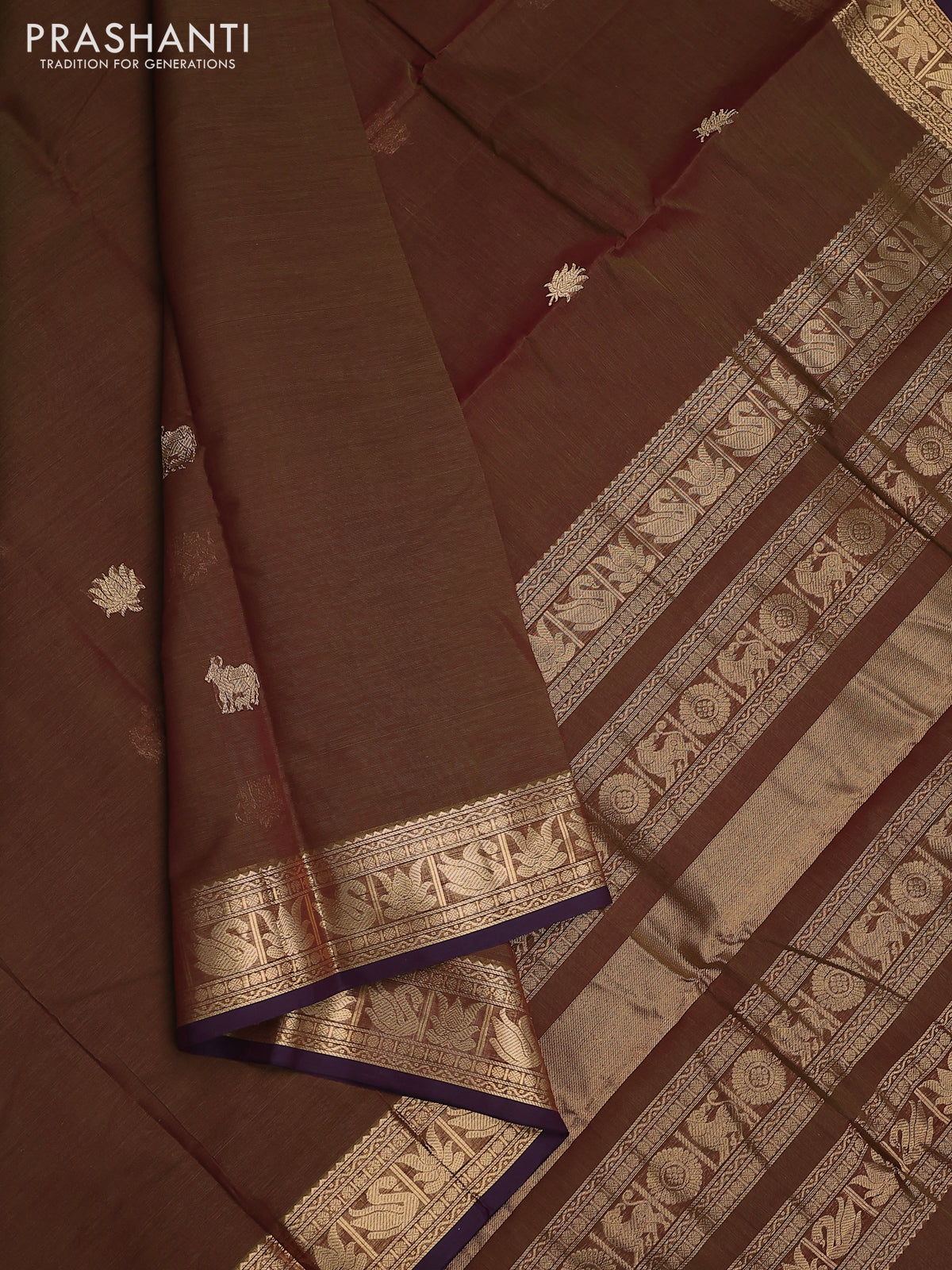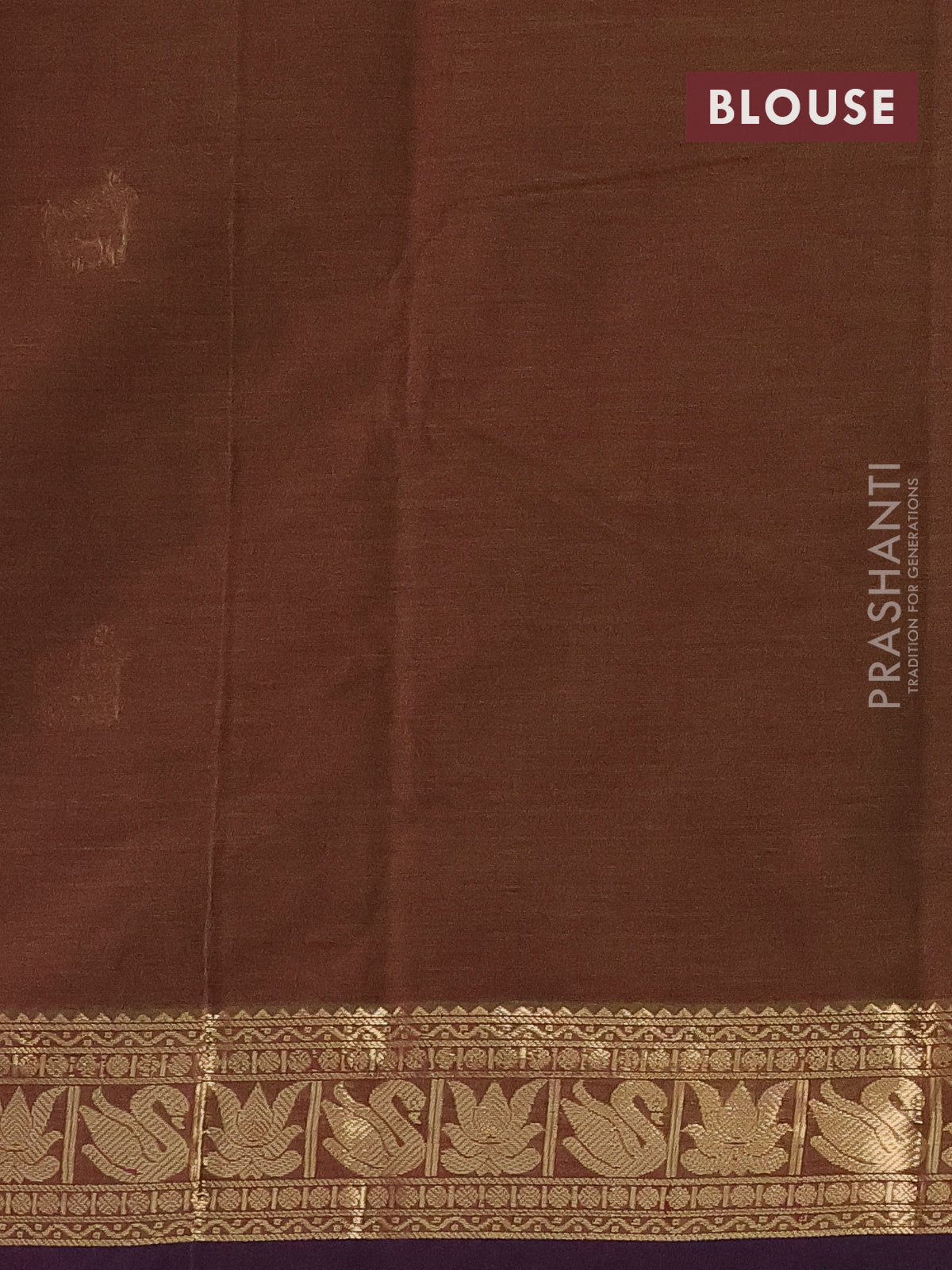 Kanchi cotton saree sap green and violet with zari woven buttas and zari woven border