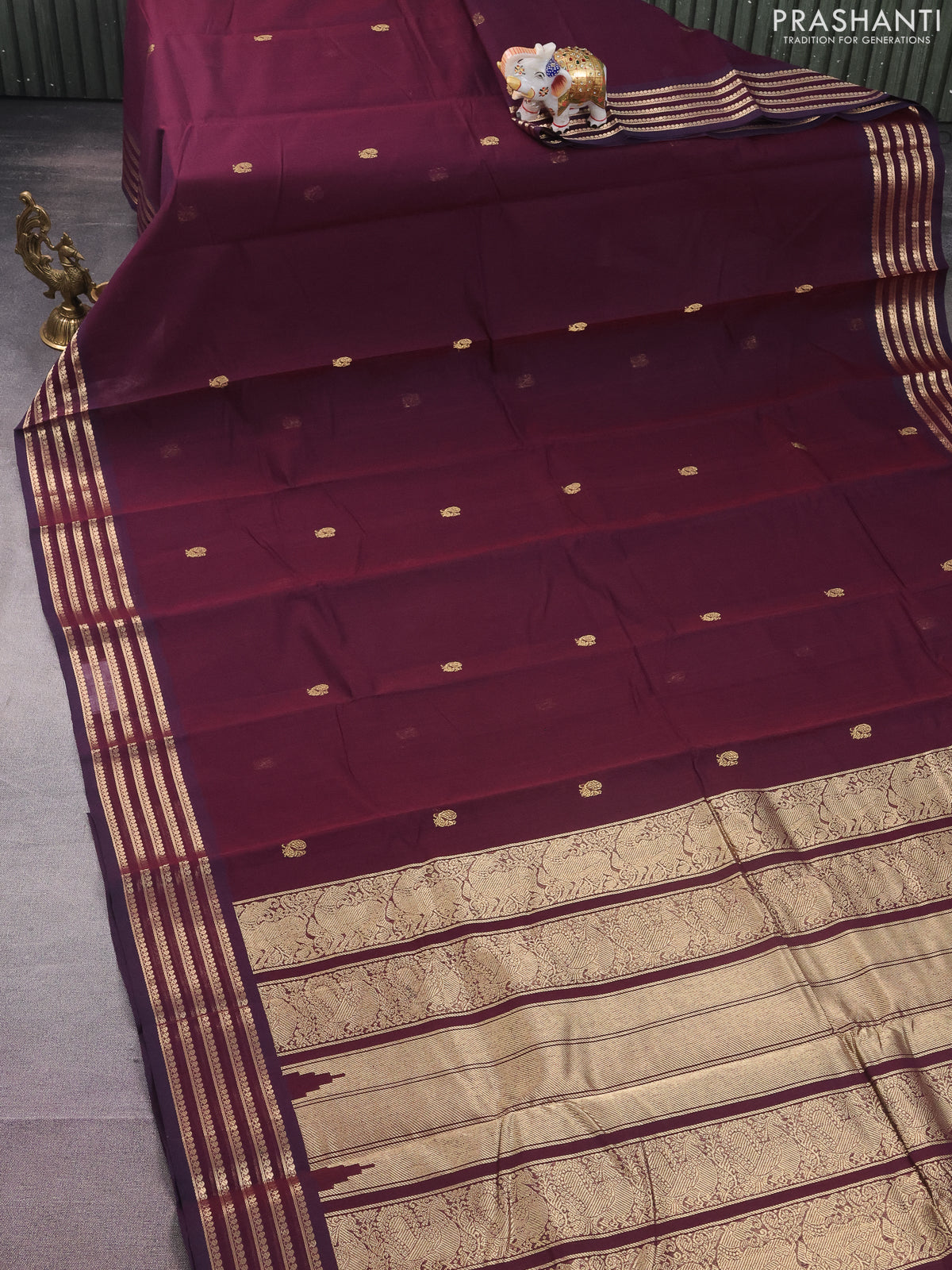 Kanchi cotton saree wine shade with annam zari woven buttas and zari woven border