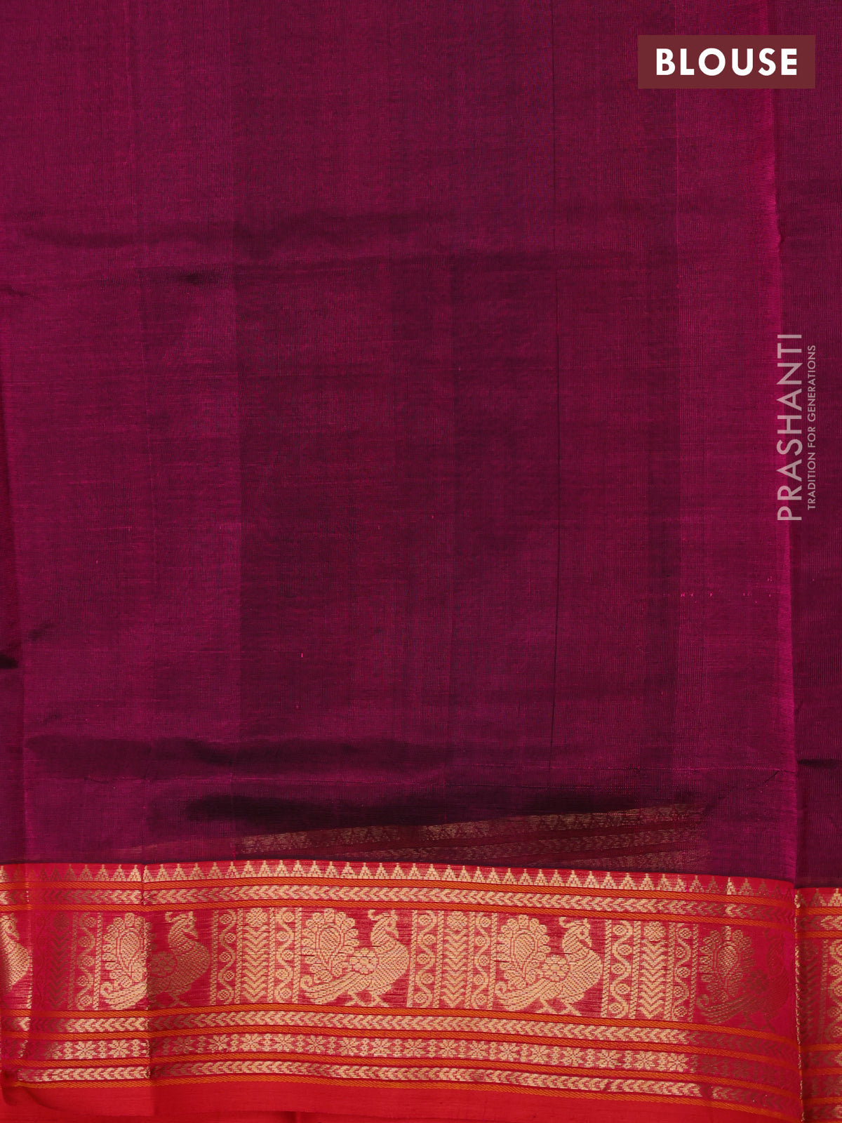 Kanchipuram silk cotton saree dark magenta pink and red with allover thread checks & 1000 buttas and zari woven border