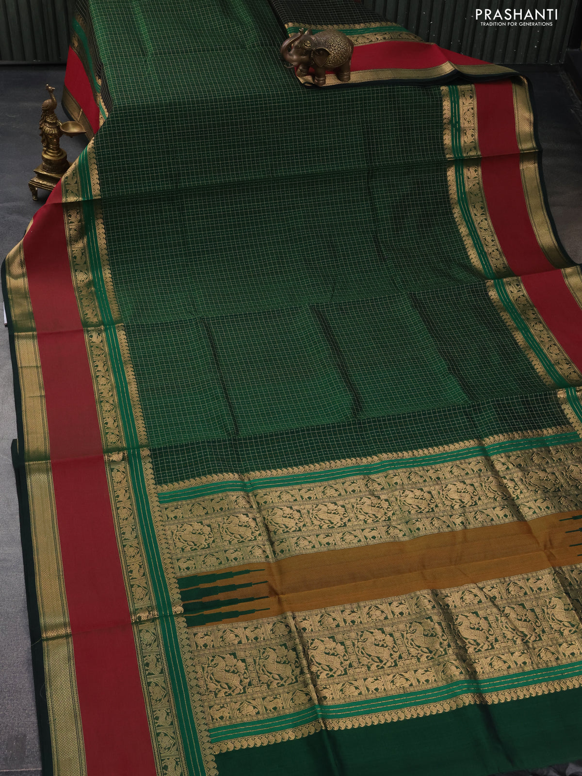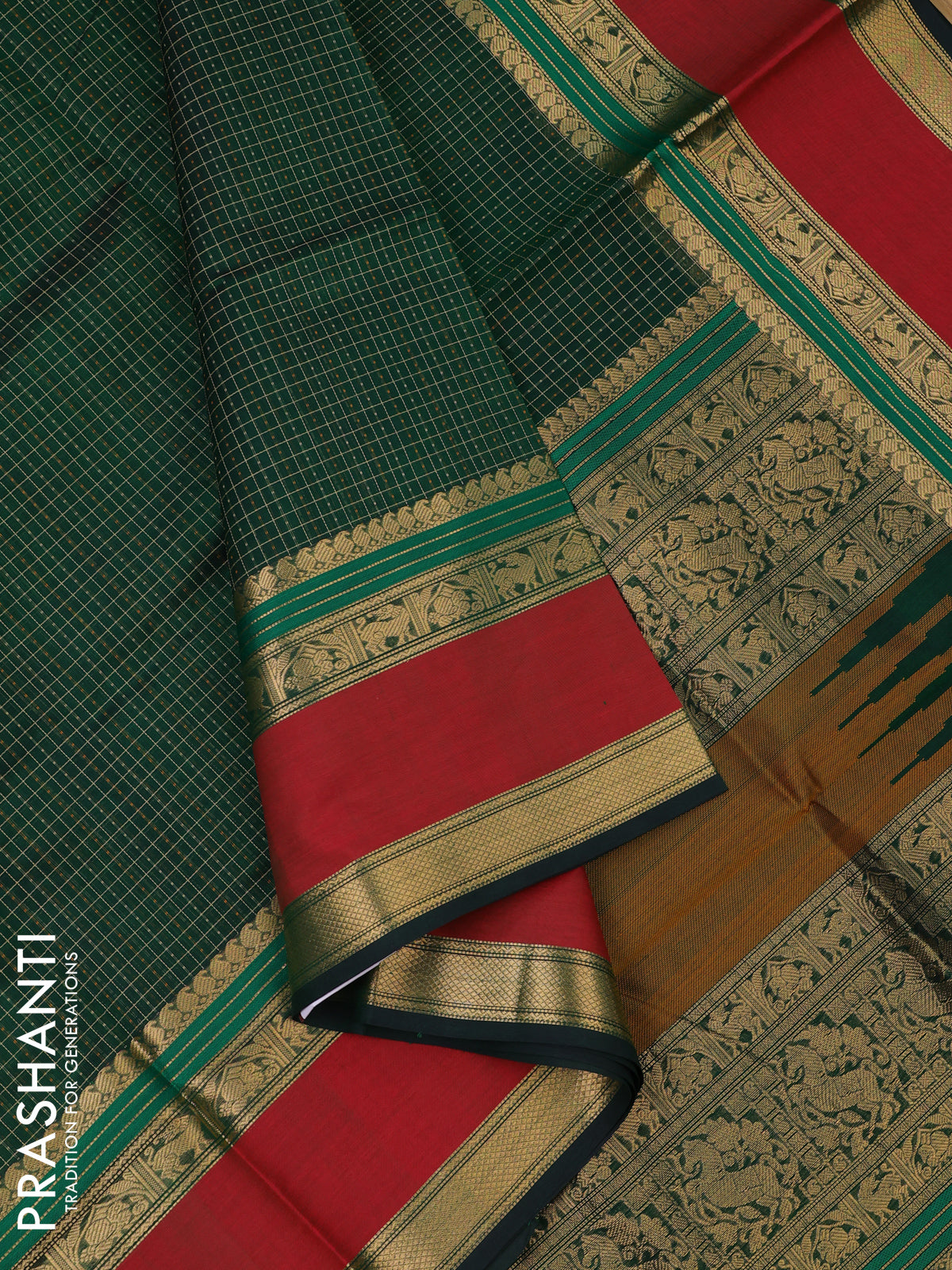 Kanchipuram silk cotton saree green and maroon with allover lakshadeepam pattern and rettapet zari woven border