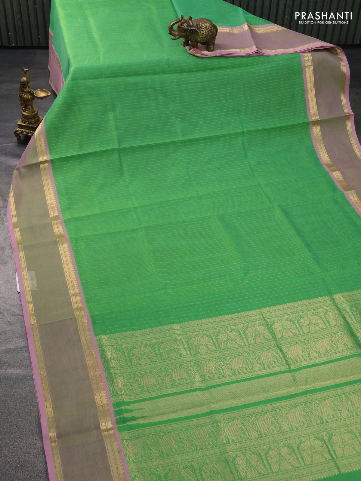 Kanchipuram silk cotton saree light green and light pink with allover zari weaves and zari woven border