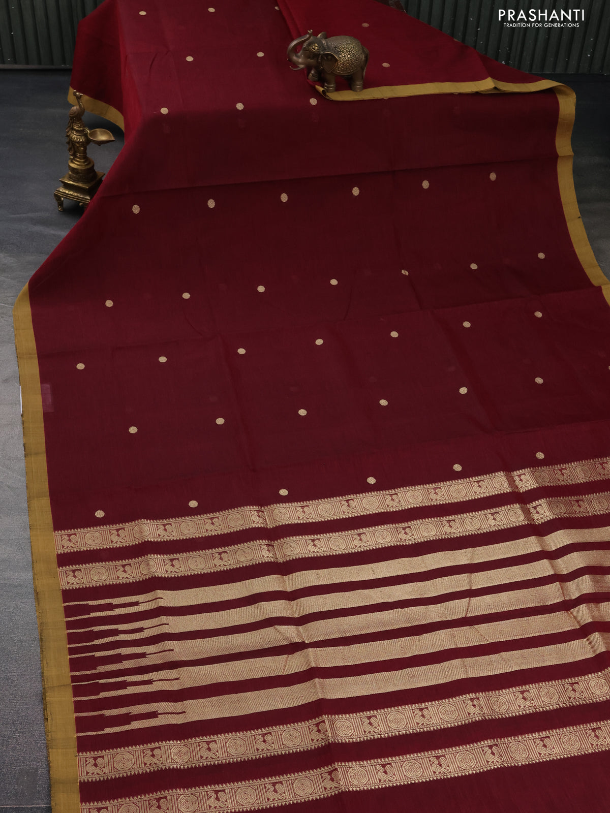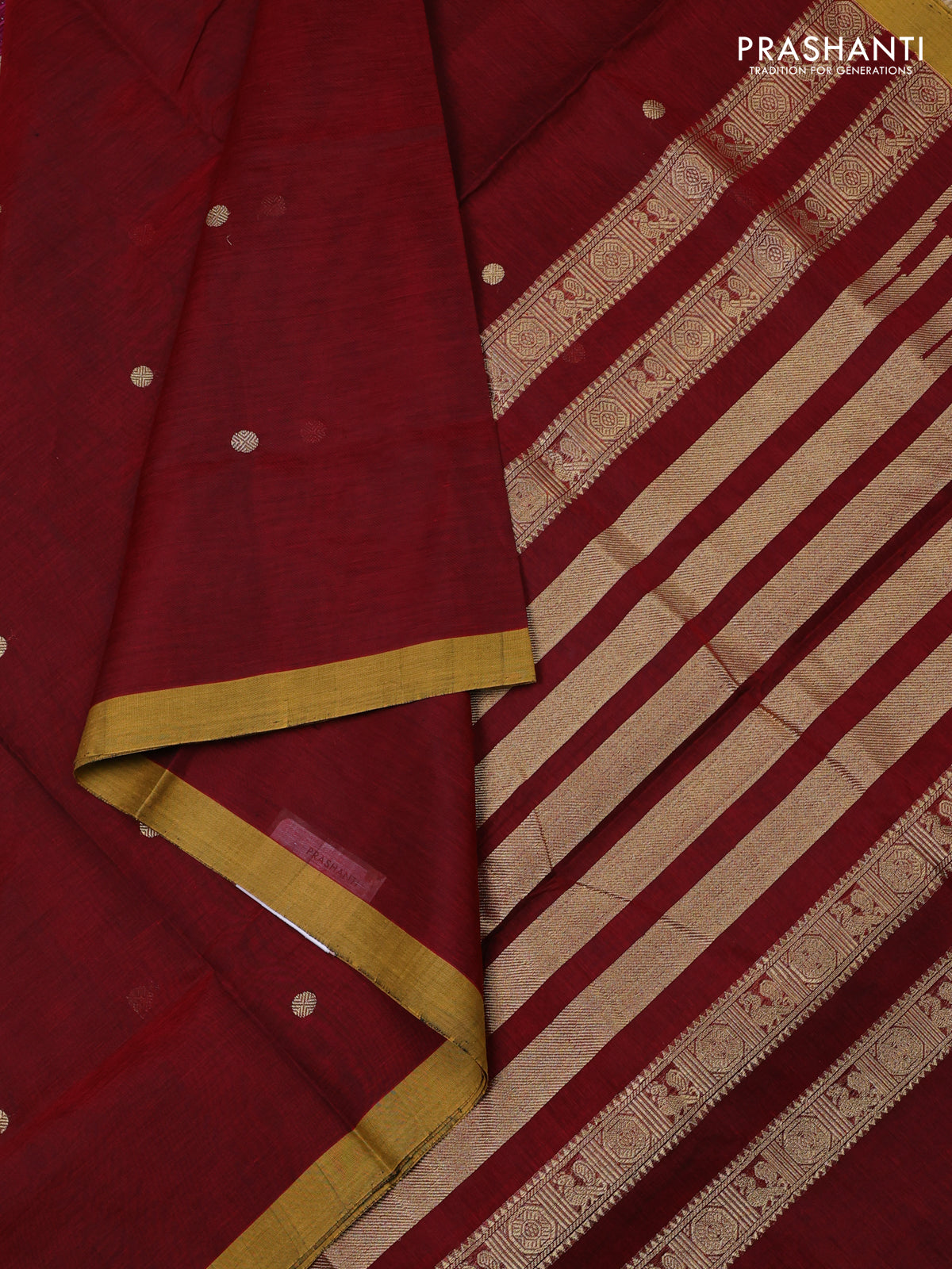 Kanchipuram silk cotton saree maroon and sandal with zari woven buttas and simple border