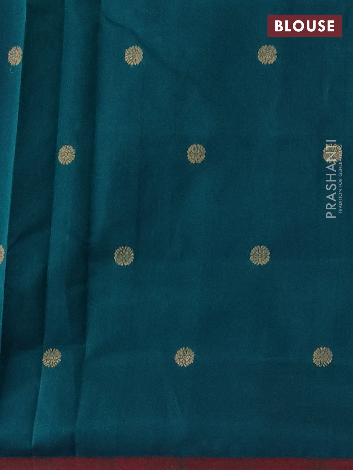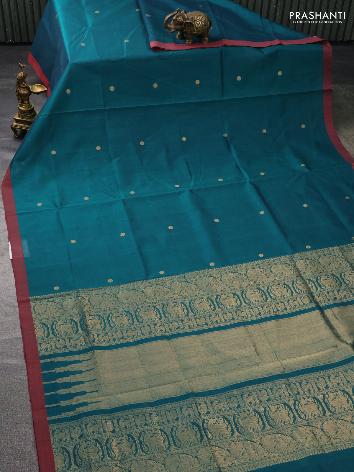 Kanchipuram silk cotton saree peacock green and maroon with zari woven buttas and simple border