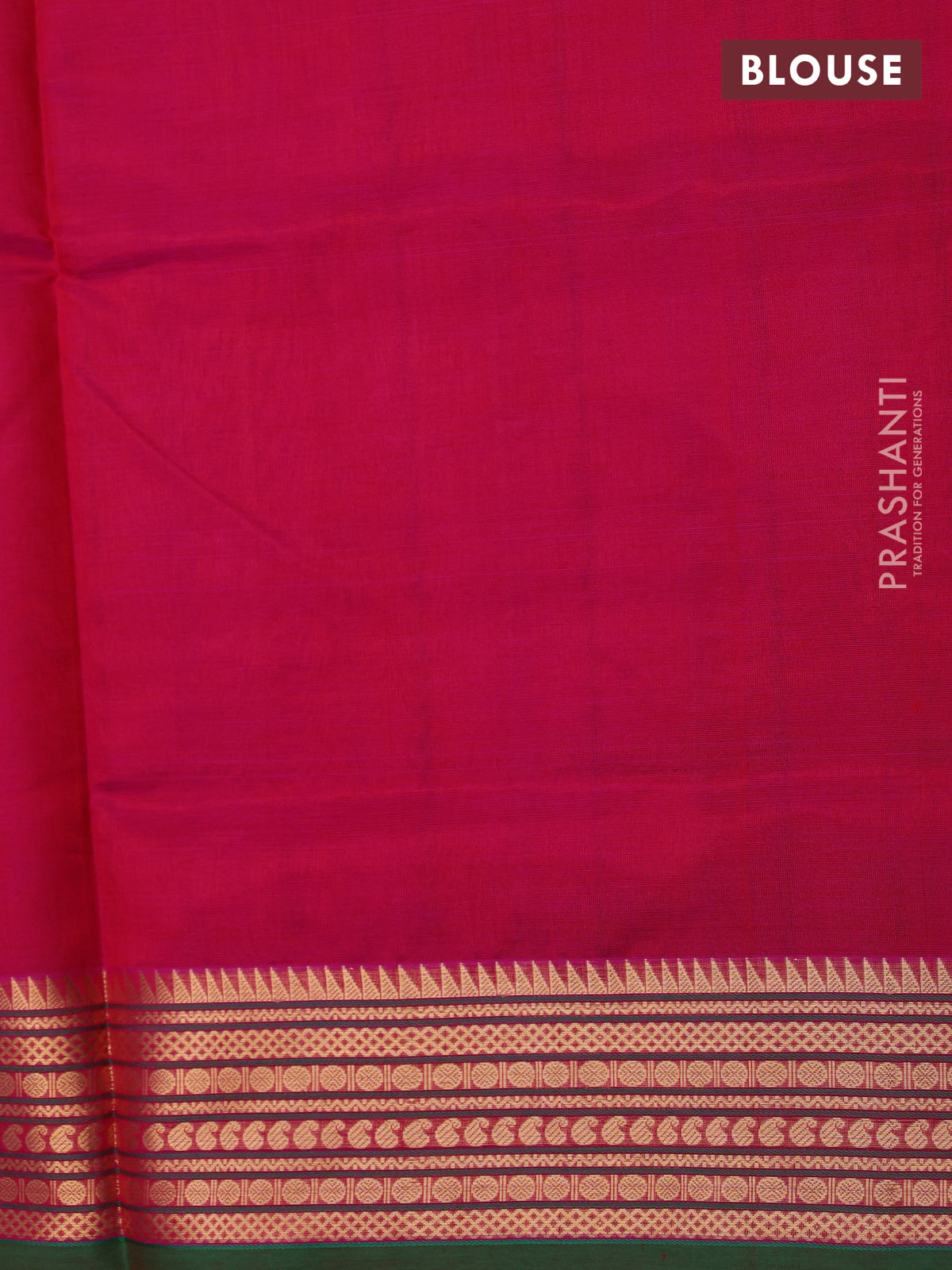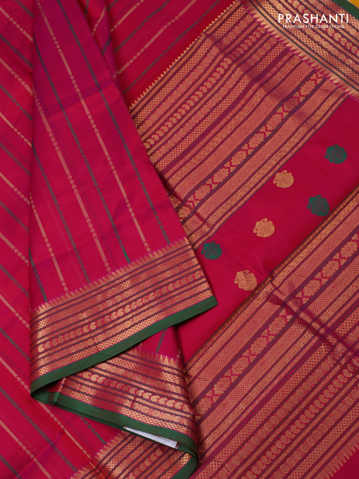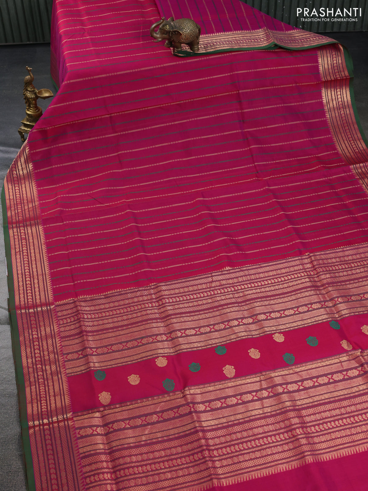 Kanchipuram silk cotton saree pink and green with allover thread weaves and zari woven border