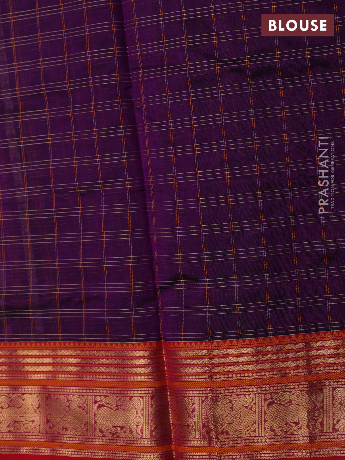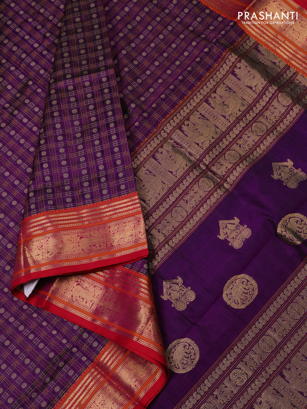 Kanchipuram silk cotton saree purple and pink with allover thread checks & buttas and zari woven border