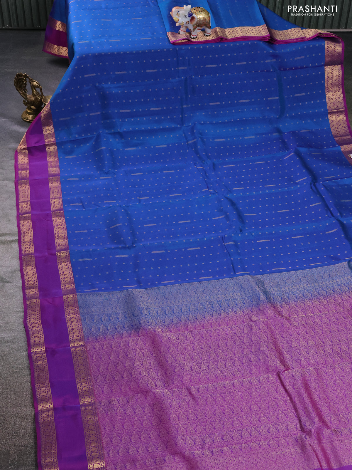 Kanchipuram silk saree blue and purple with allover zari woven butta weaves and rettapet zari woven border