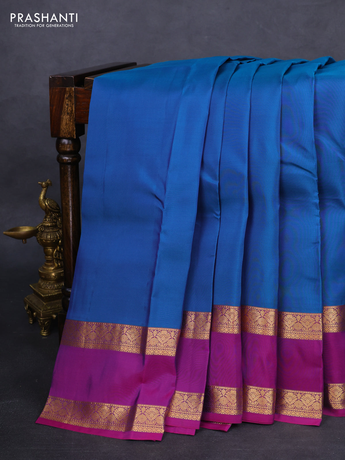 Kanchipuram silk saree cs blue and purple with plain body and rettapet zari woven border