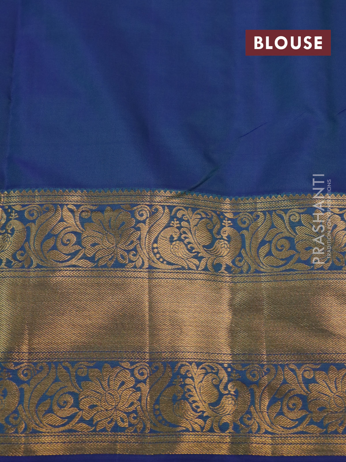 Kanchipuram silk saree dual shade of blue with allover zari woven floral brocade weaves and long rich zari woven border