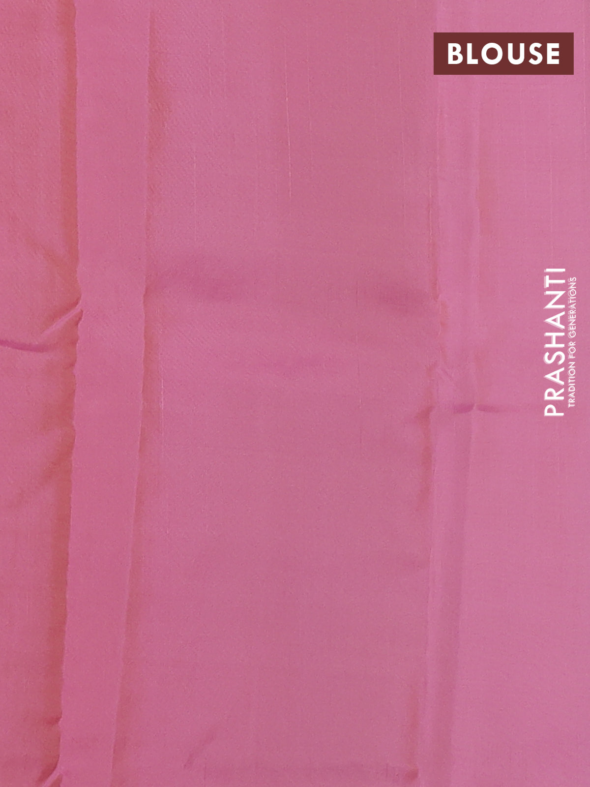 Kanchipuram silk saree dual shade of teal blue and light pink with allover copper zari weaves and simple border