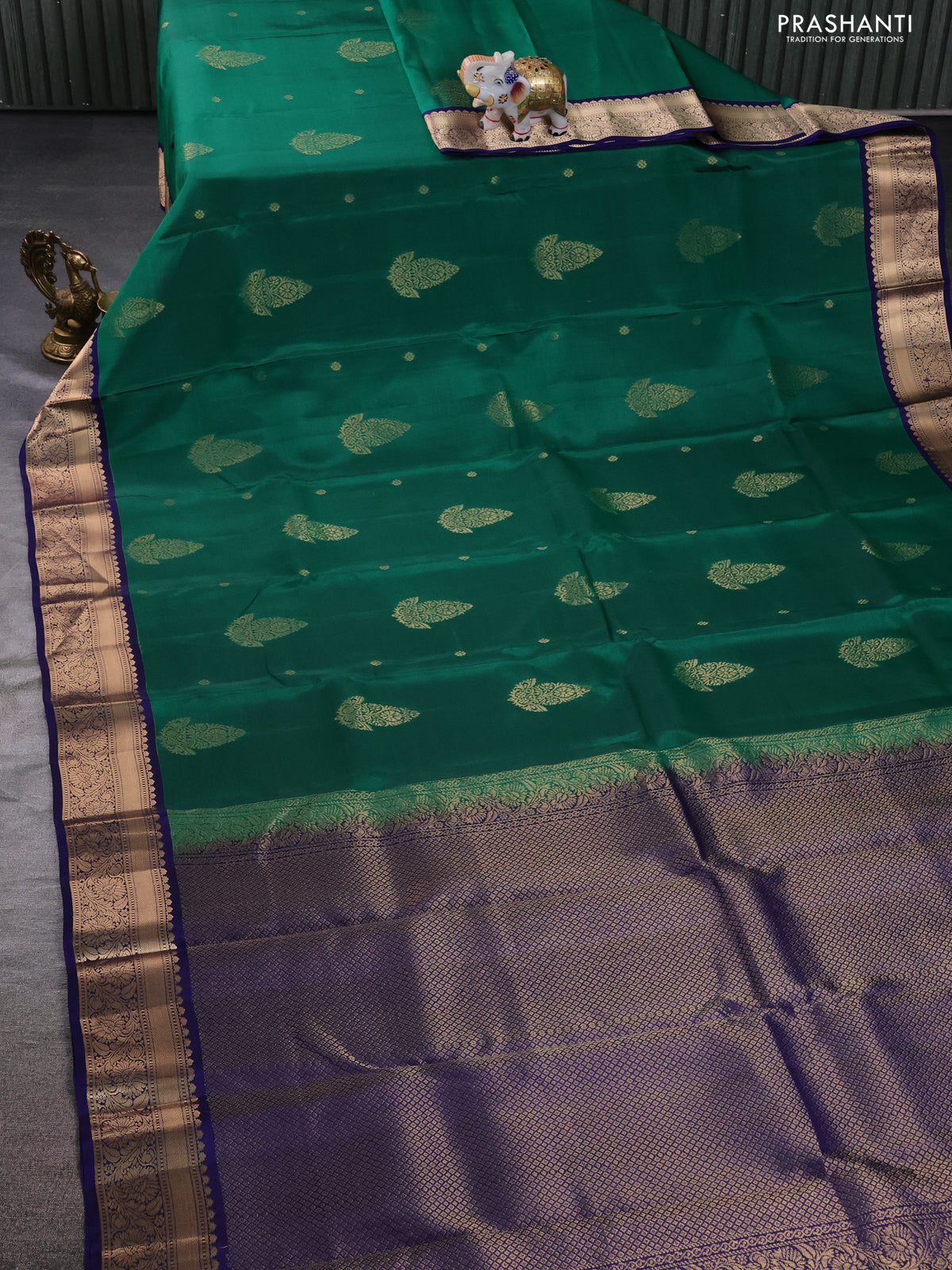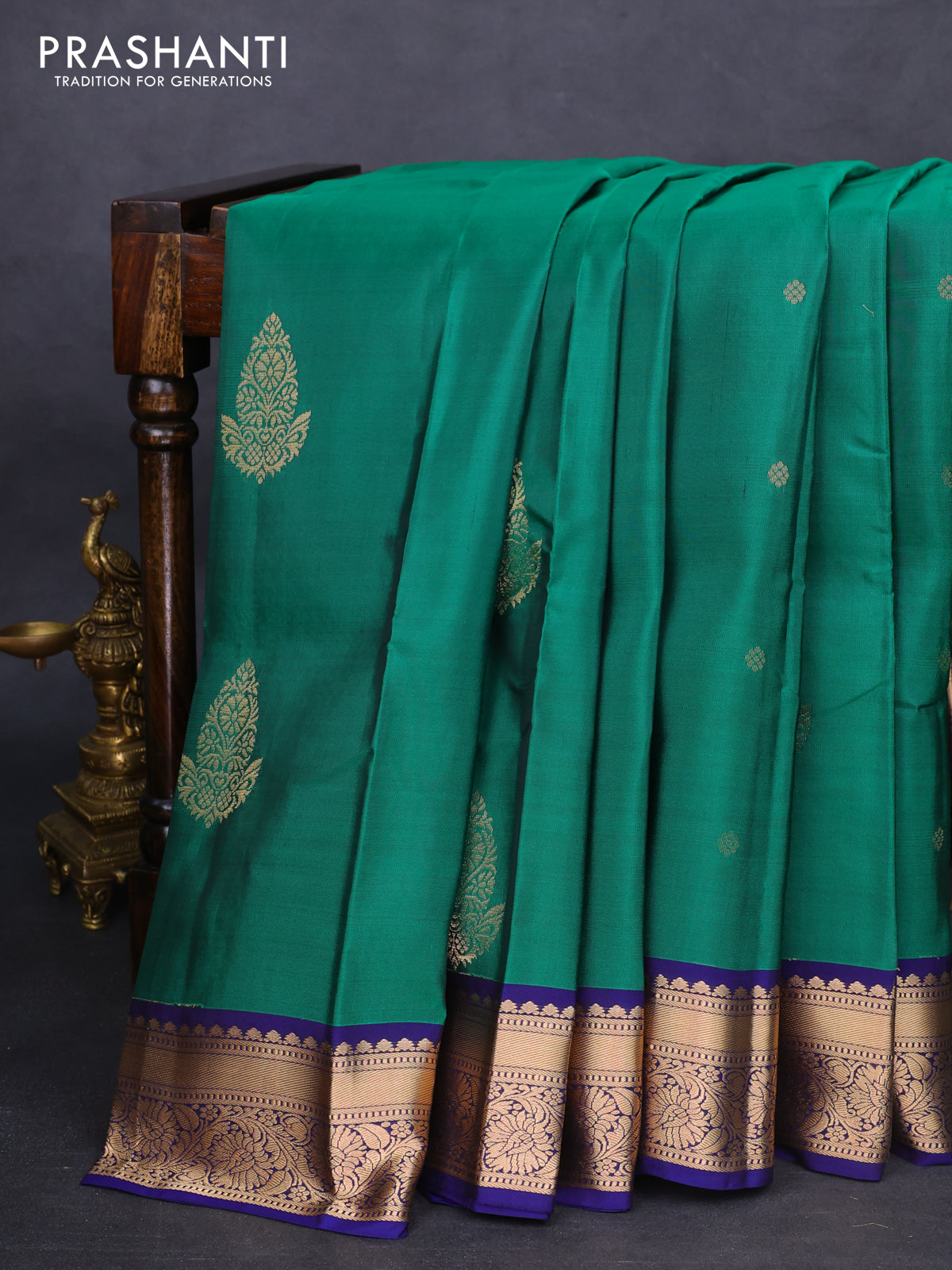 Kanchipuram silk saree green and blue with zari woven buttas and zari woven border