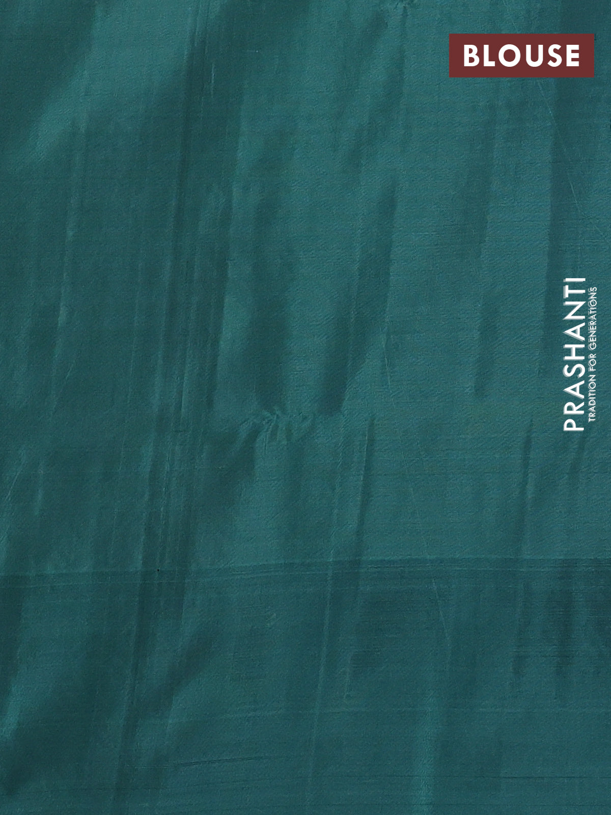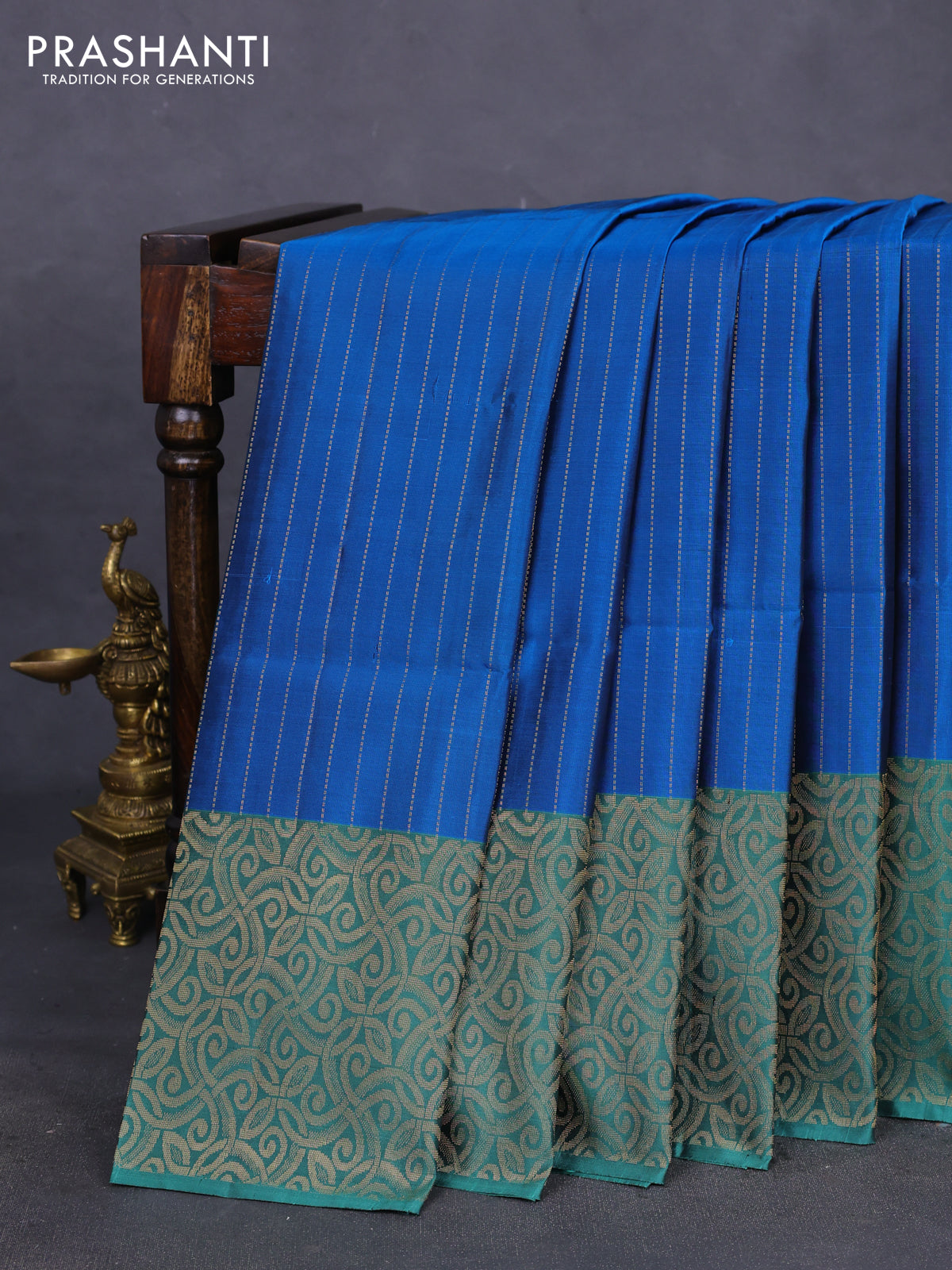 Kanchipuram soft silk saree peacock blue and pastel green with allover zari weaves and pining border