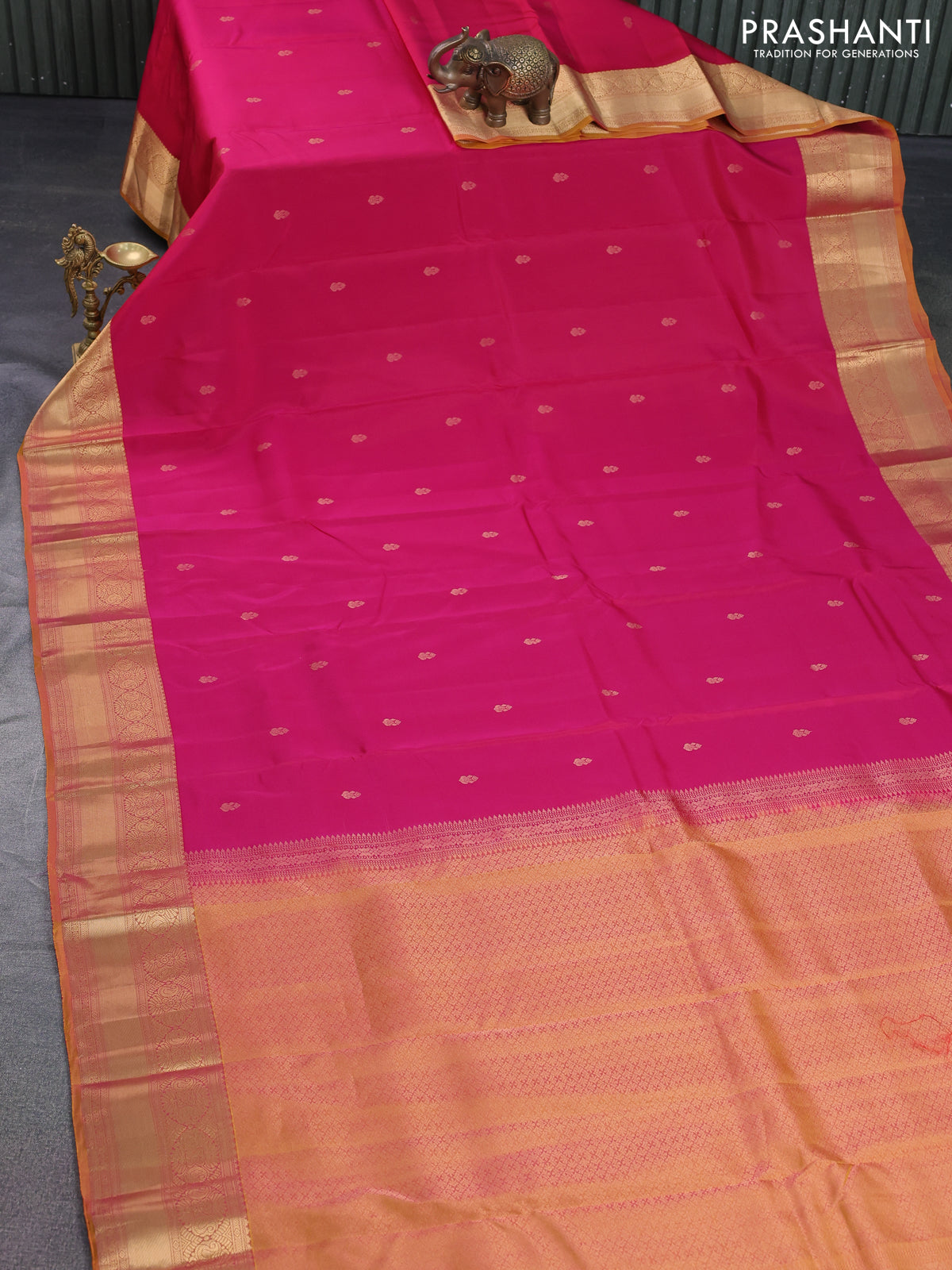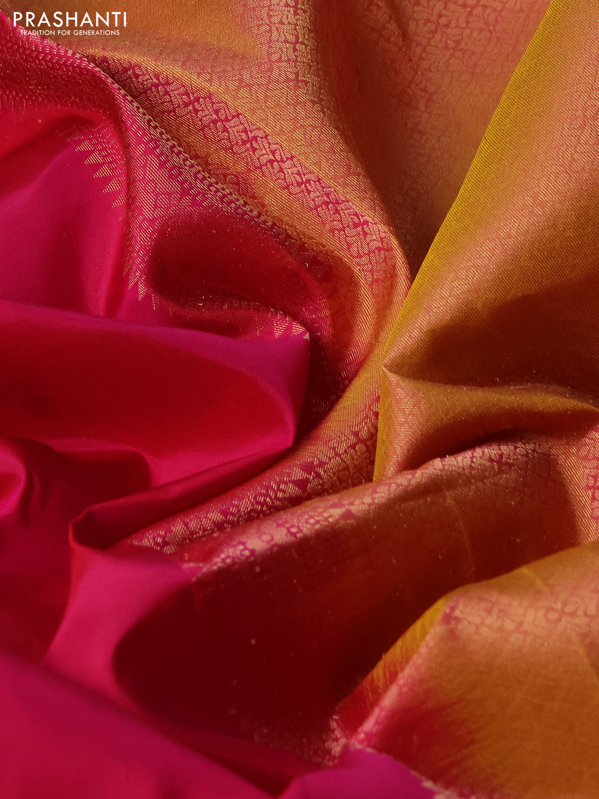 Kanchipuram silk saree pink and mustard yellow with zari woven buttas and zari woven border